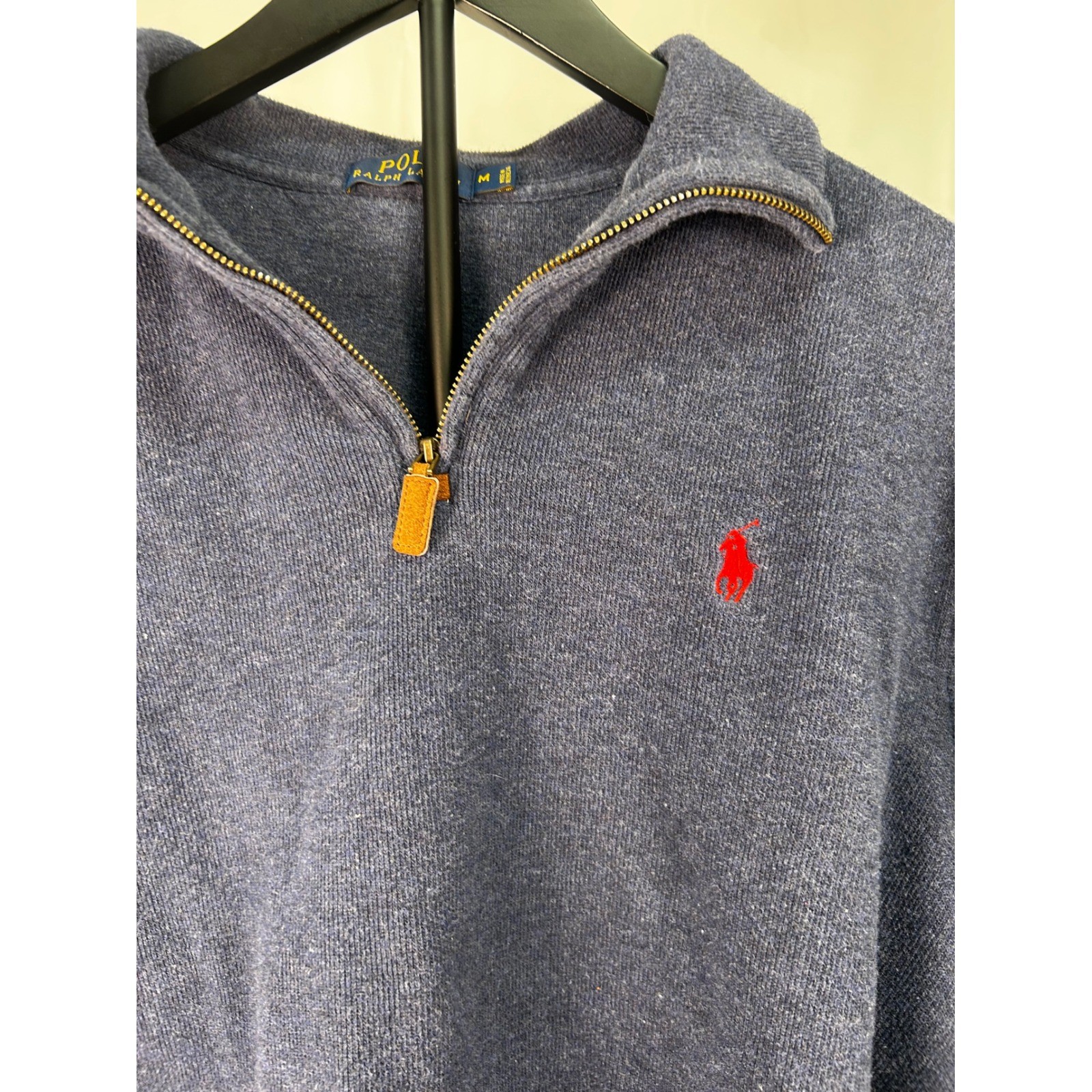 Polo Ralph Lauren Men's Navy Blue Quarter Zip Sweater Size M Red Pony Logo