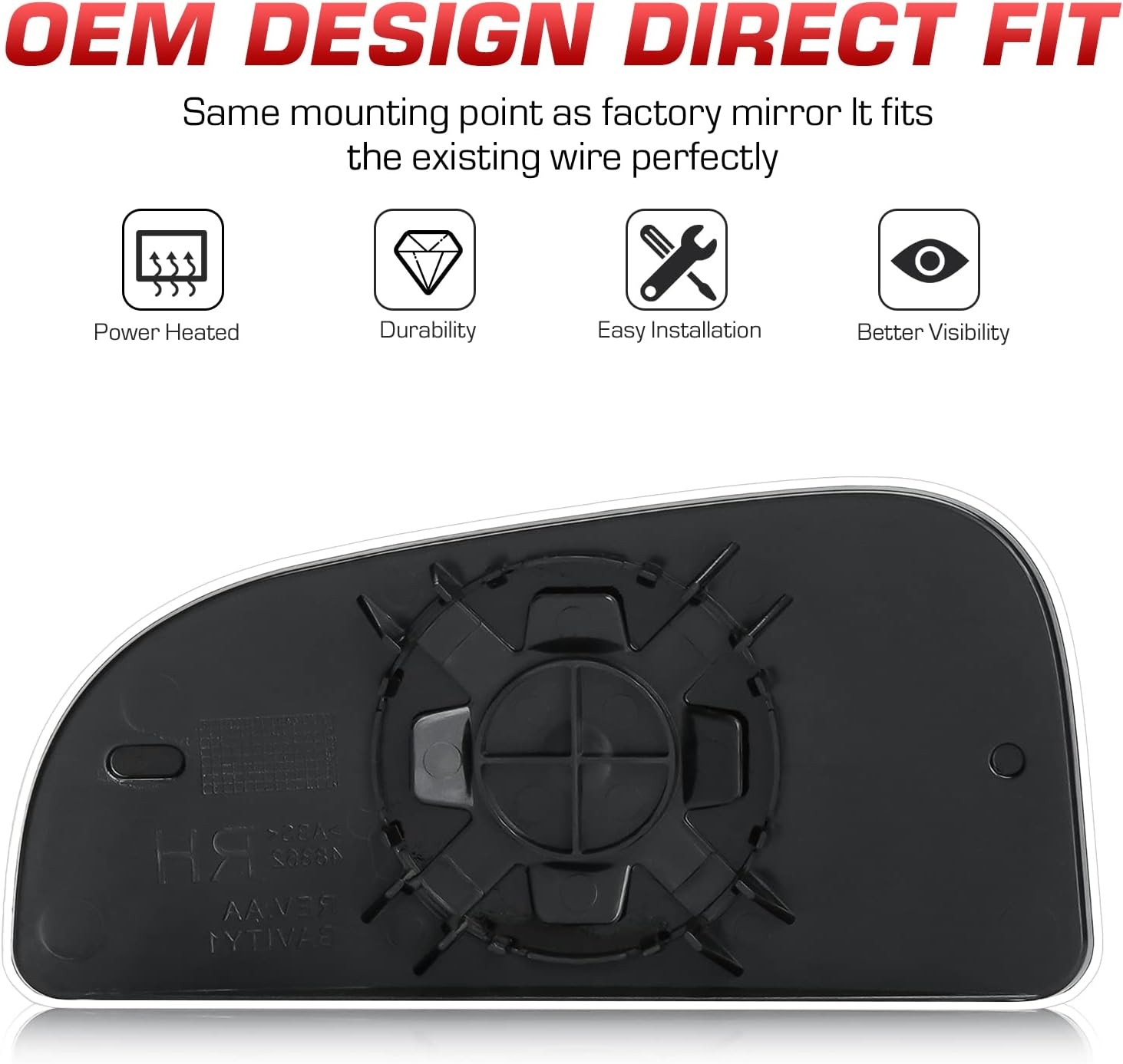 Passenger Right Side View Mirror Glass Replacement for Dodge Ram 1500 2500 3500