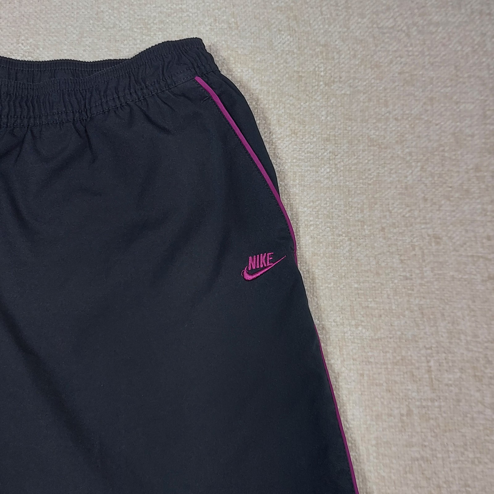 VTG Nike Joggers Warm Up Windbreaker Pants Women Large 12-14 Black Purple Stripe