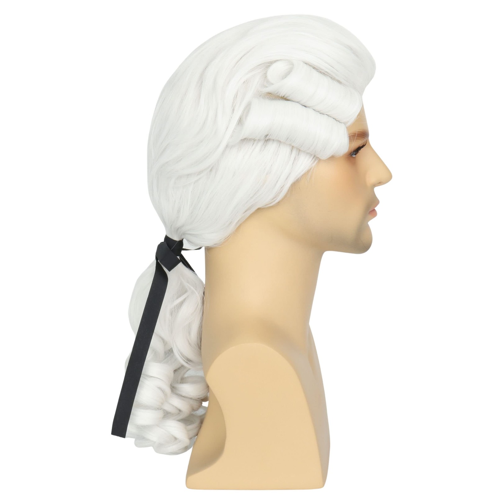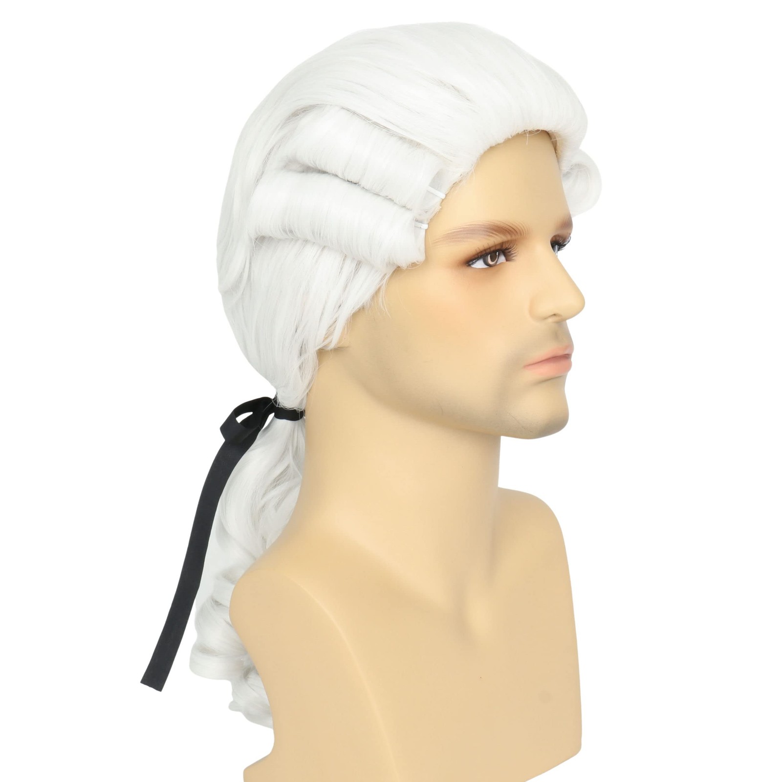 как выглядит Miss U Hair Men White Colonial Powdered Wig Long Curly White Funny Wigs for M фото