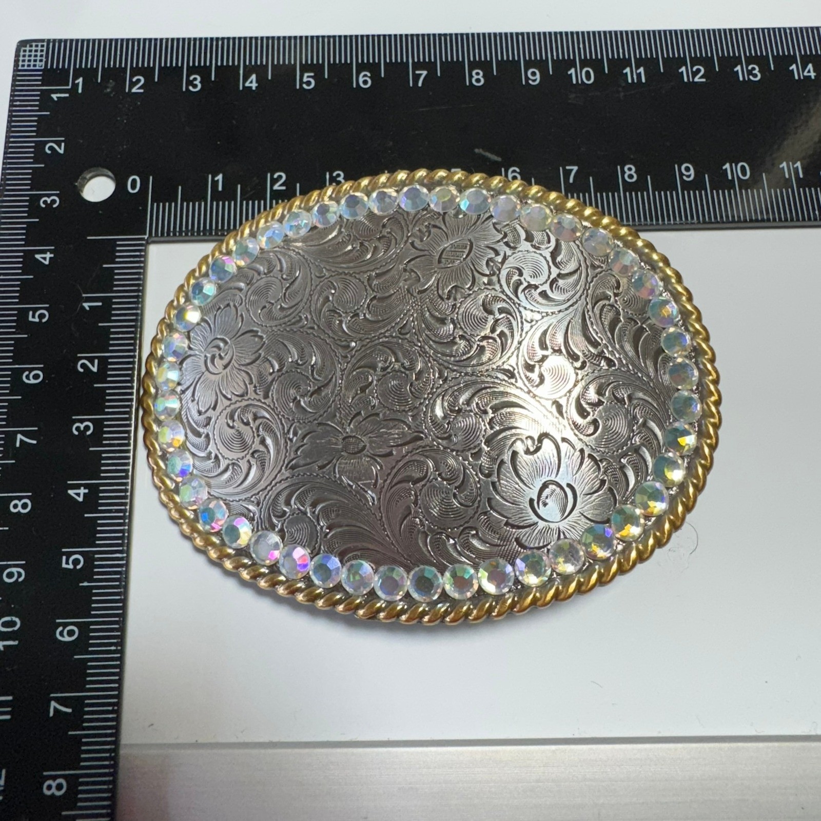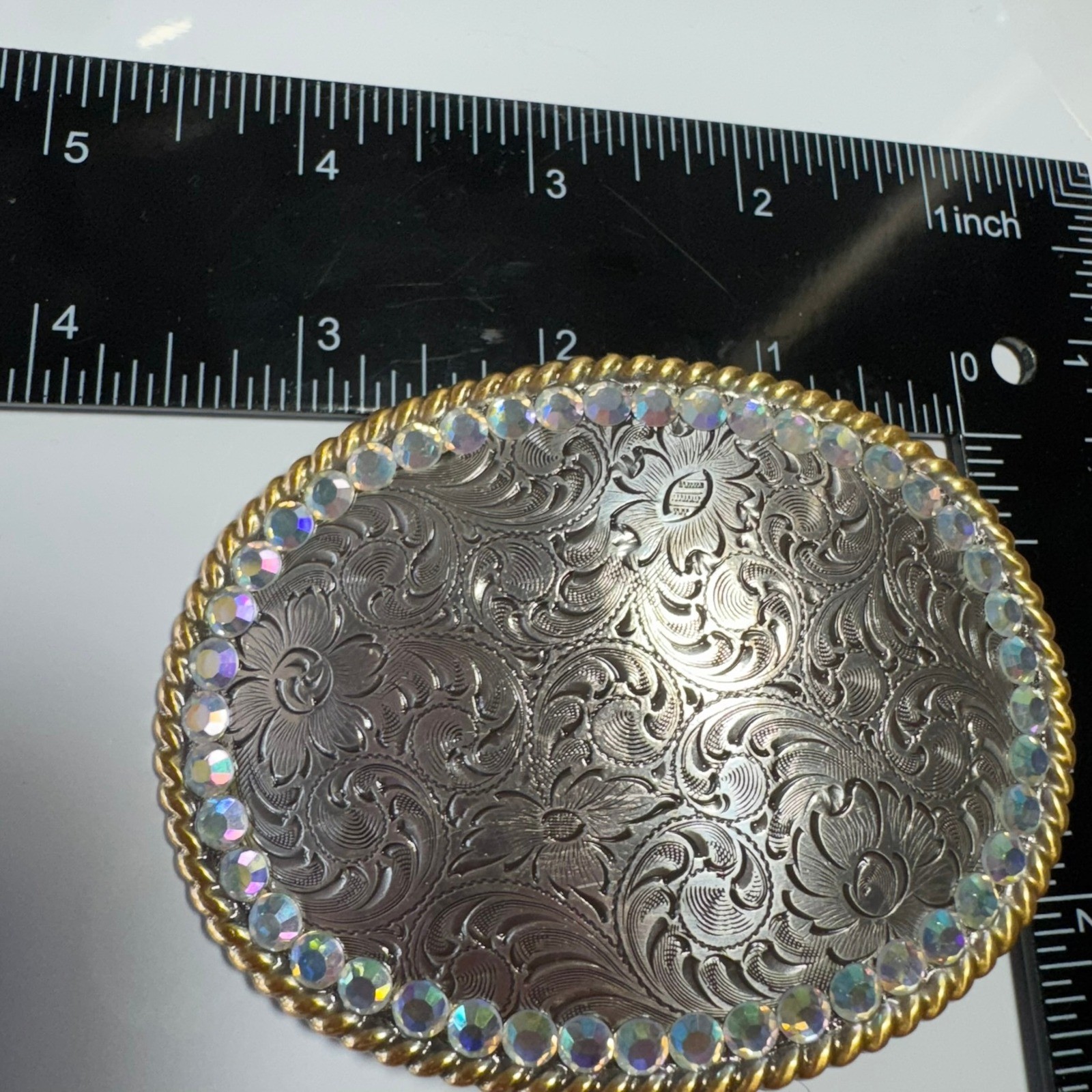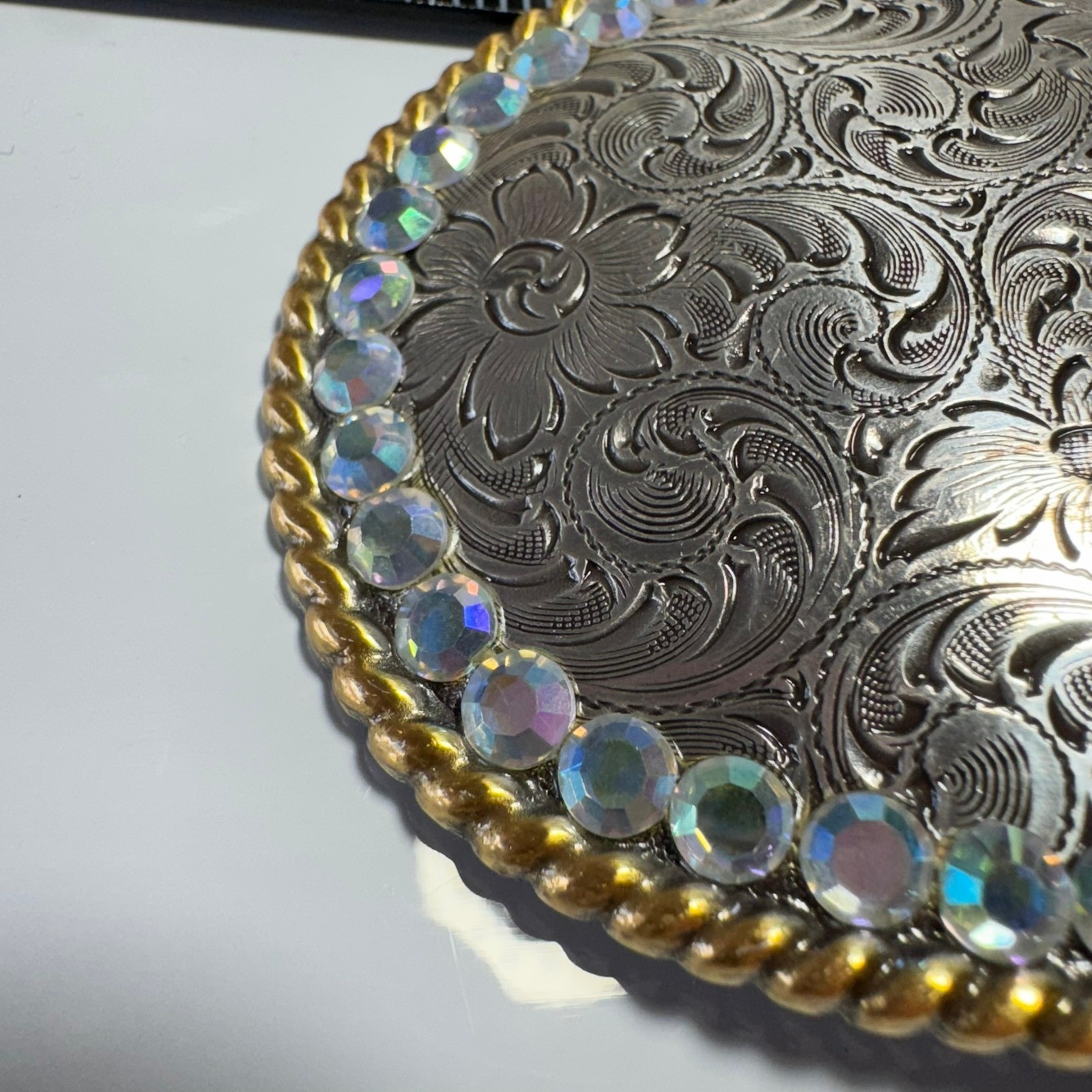 Nocona Western Engraved Oval Belt Buckle Rhinestone Border