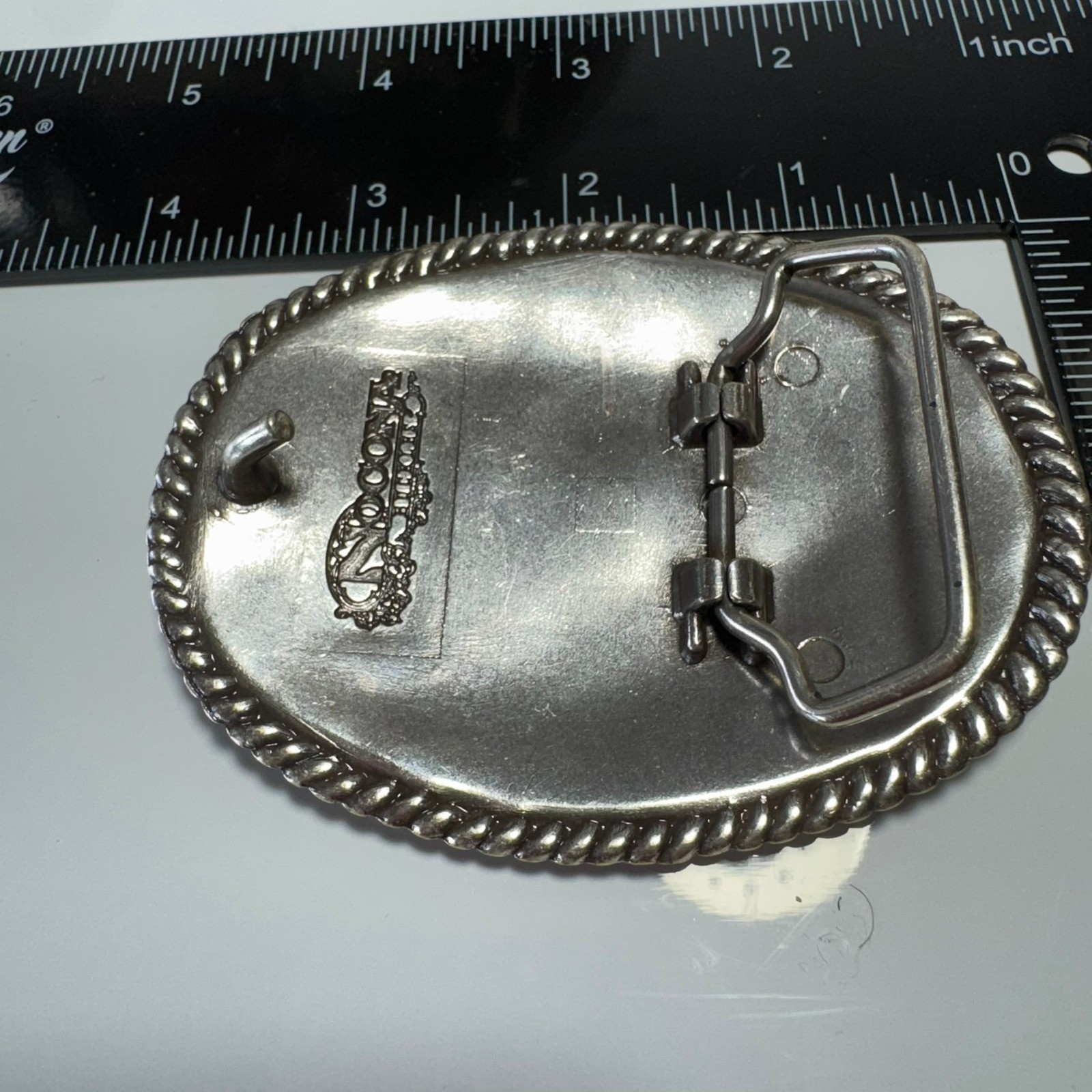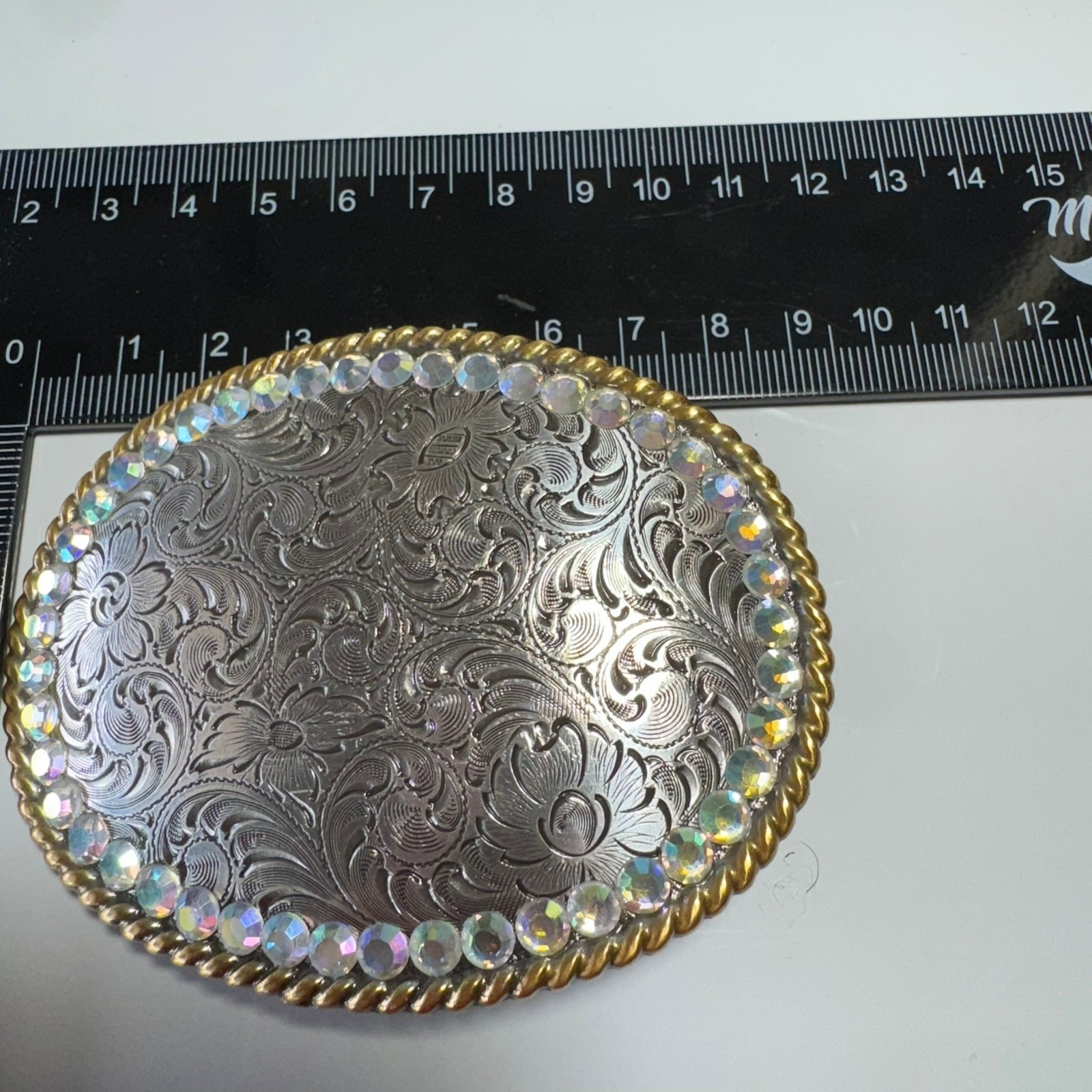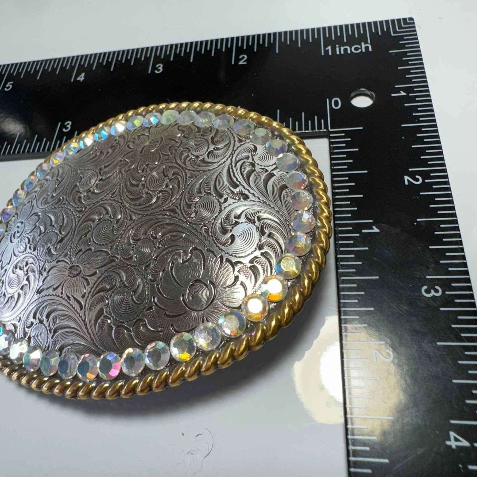 Nocona Western Engraved Oval Belt Buckle Rhinestone Border
