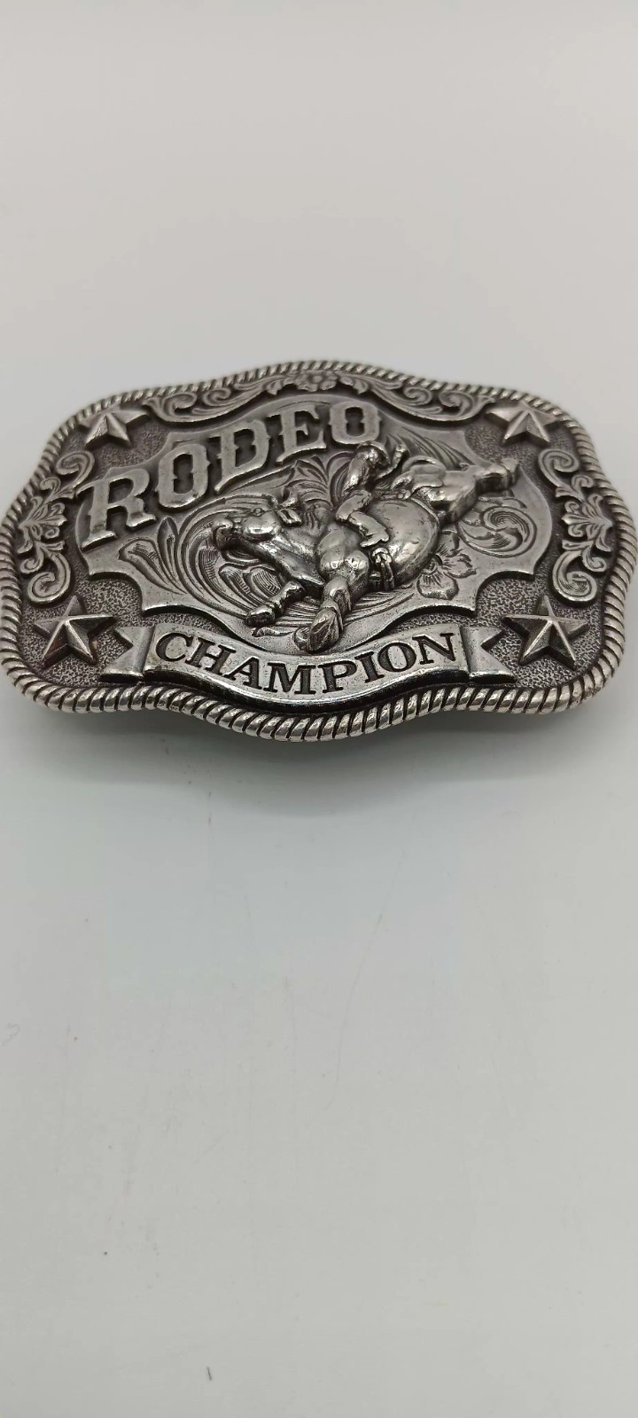 Championship Rodeo Belt Buckle Silver Plated Western Cowboy Bull Riding USA