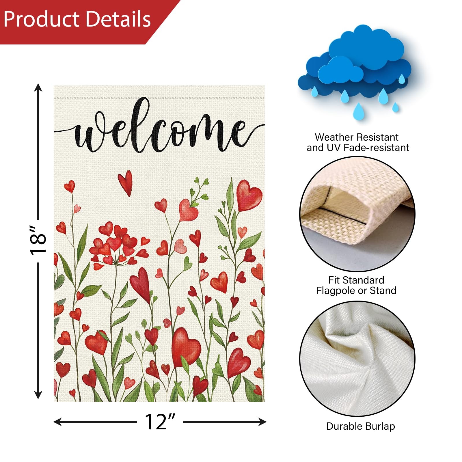 Valentine's Day Garden Flag - Double-Sided Love Heart Burlap Decoration 12x18