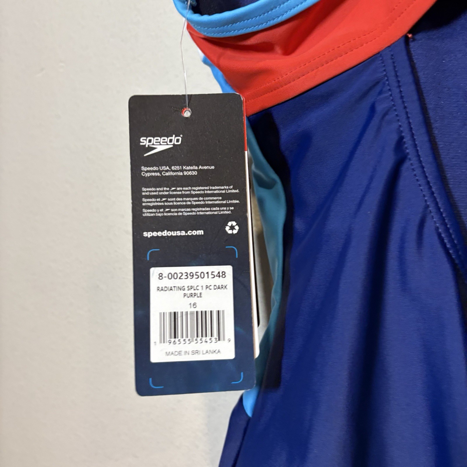 NWT women s Speedo Girl's Swimsuit One Piece Cross Back Size 16