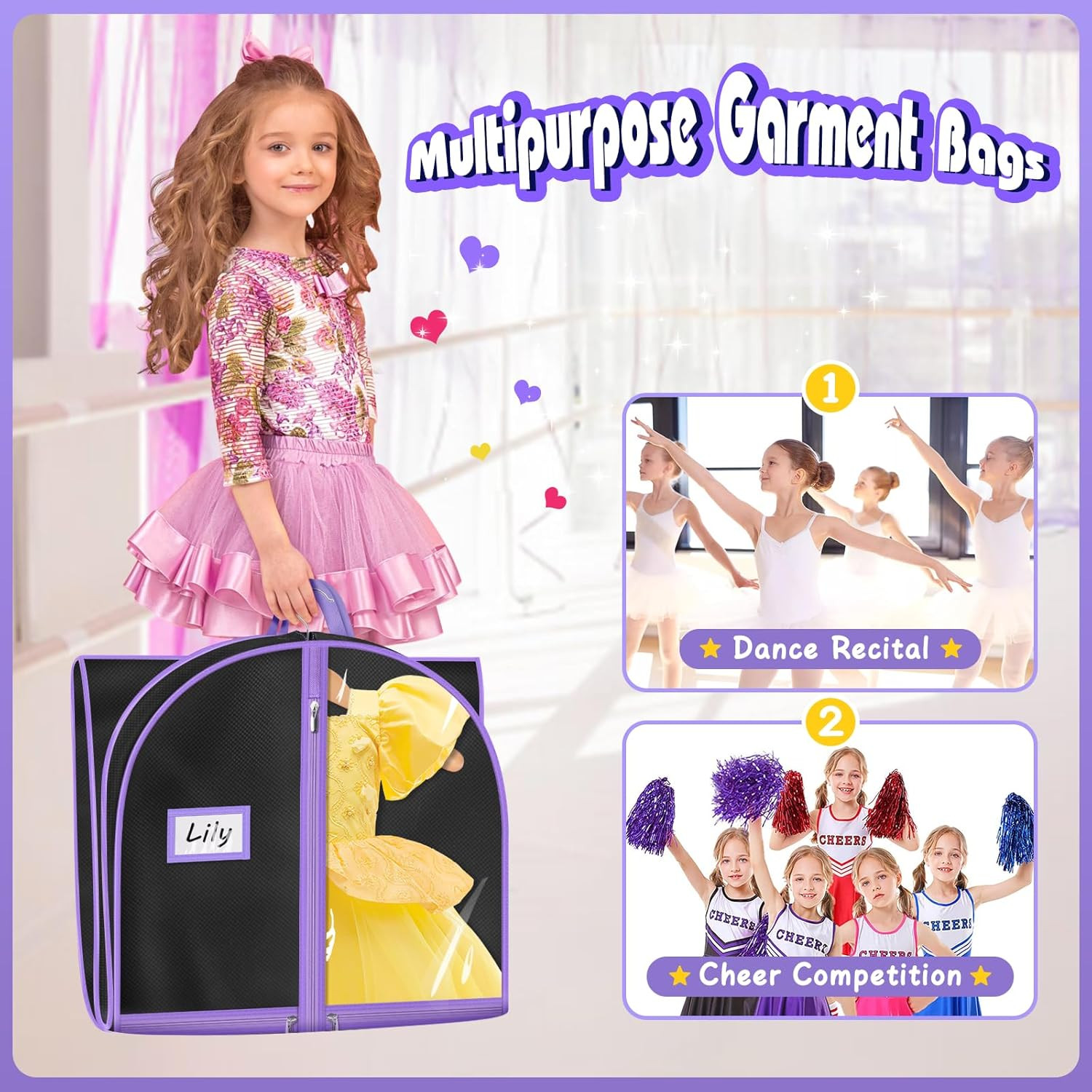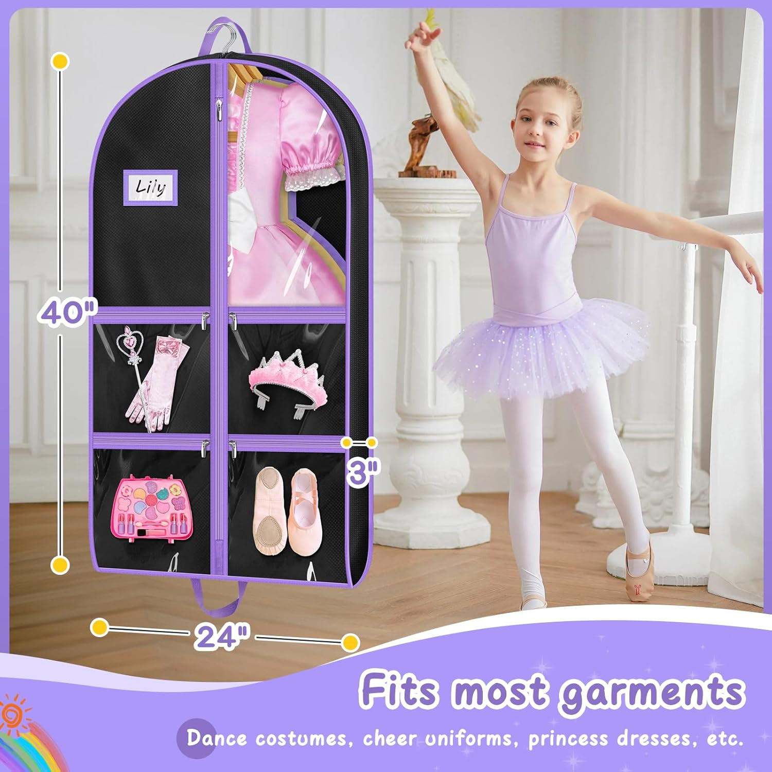 Dance Costume Garment Bags with 4 Pockets - 40 Storage for Recitals Travel