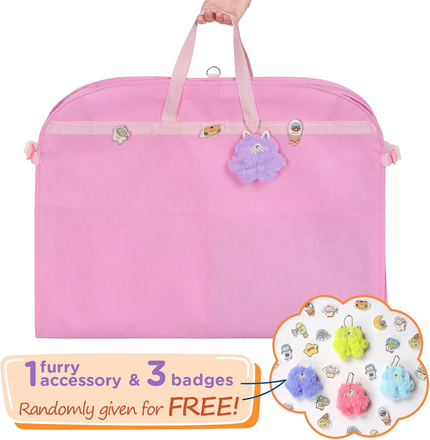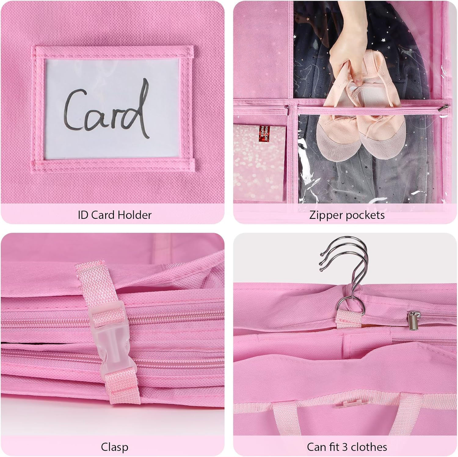 40-Inch Pink Dance Costume Garment Bag with Zippered Pockets and Accessories