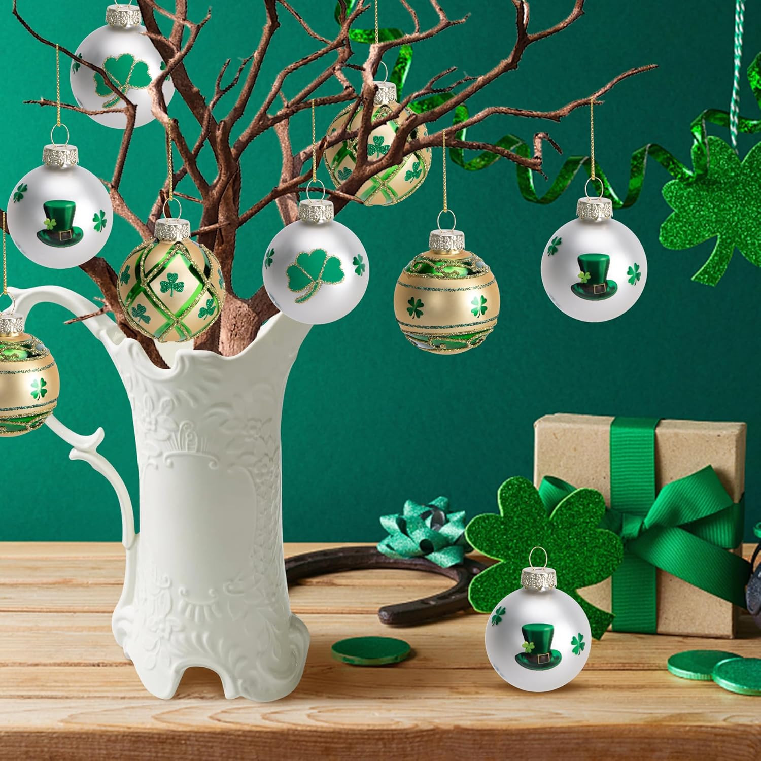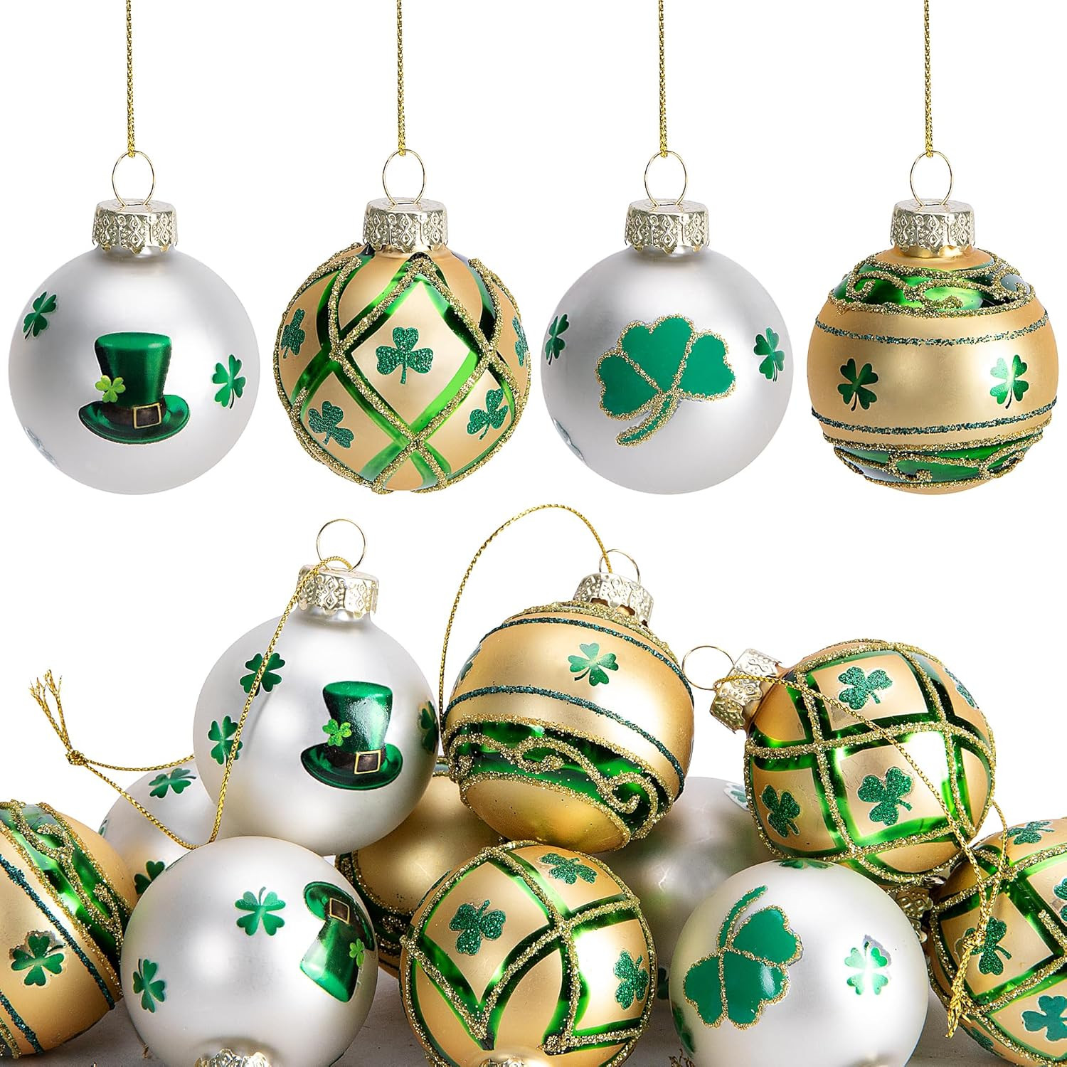 как выглядит St. Patricks Day Glass Ornaments - 12 Pcs Irish Clover Balls for Decor фото
