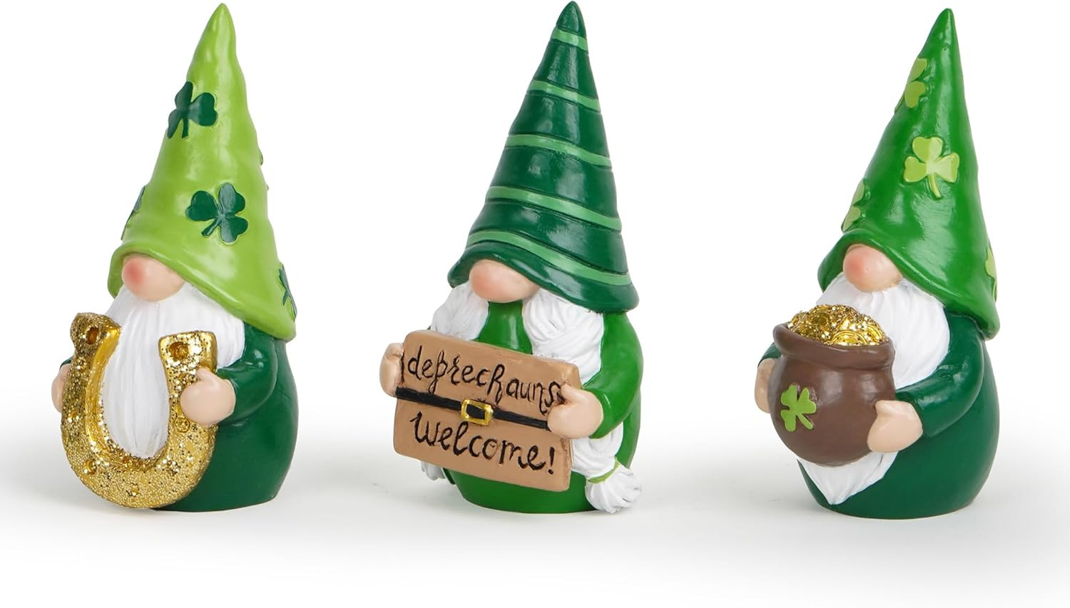 Hand-Painted St. Patrick's Day Gnome Figurines with Pot of Gold and Shamrock