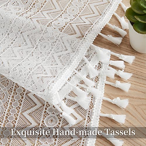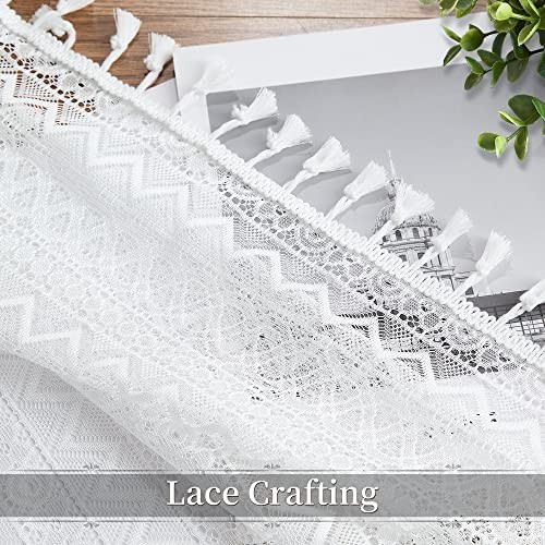 Short Boho Lace Sheer Curtains with Tassels,72 40W x 72L Pack of 2 White