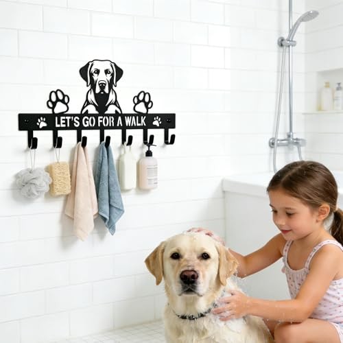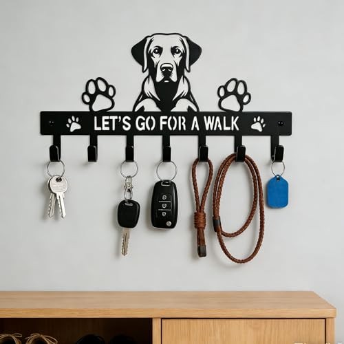 Zckjnoi Key Holder Wall Mount, Dog Leash Holder with 7 Hooks, Metal Labrador