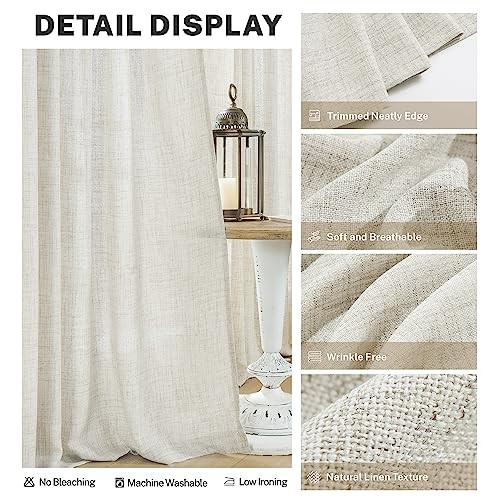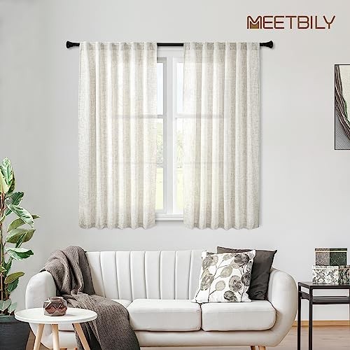 Natural Short Linen Textured Curtains 45 Inch 50W x 45L Pack of 2 Cream