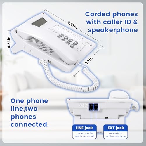 Corded Phone with Caller ID, Landline Phones for Home Office Featuring 10