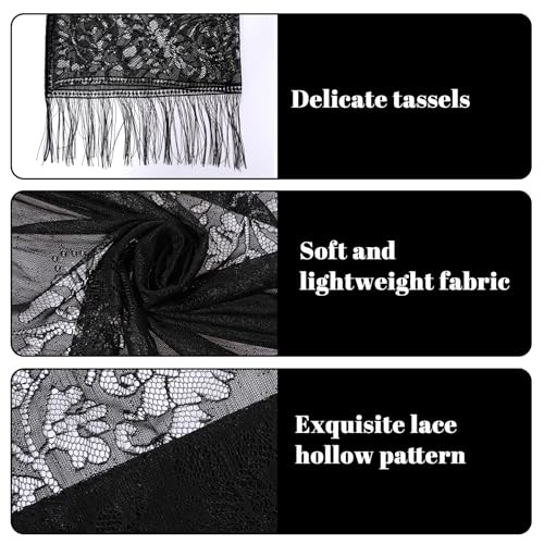 Qulkws Black Lace Shawl Women's Floral Lace Scarf Shawl with Tassels for