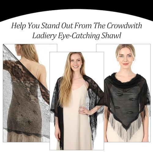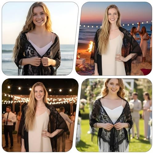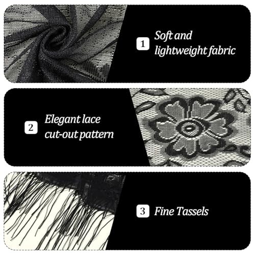 Quilax Black Lace Triangle Scarf Shawl, Sheer Shawl Wraps for Women for