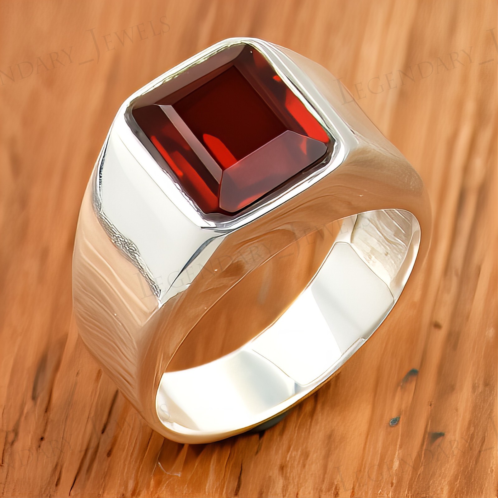 как выглядит Red Ruby Gemstone With 925 Sterling Silver Handmade Ring for Men