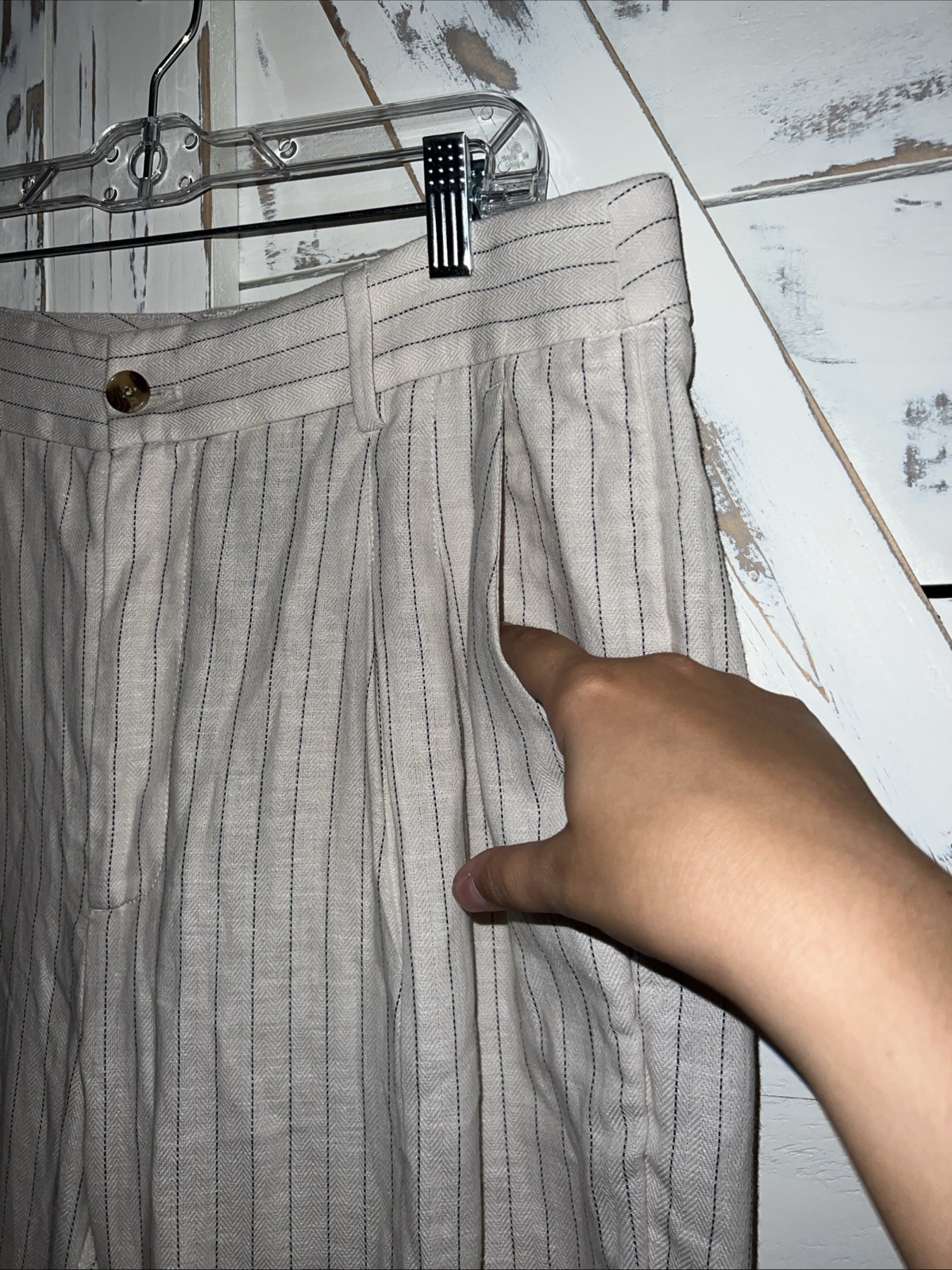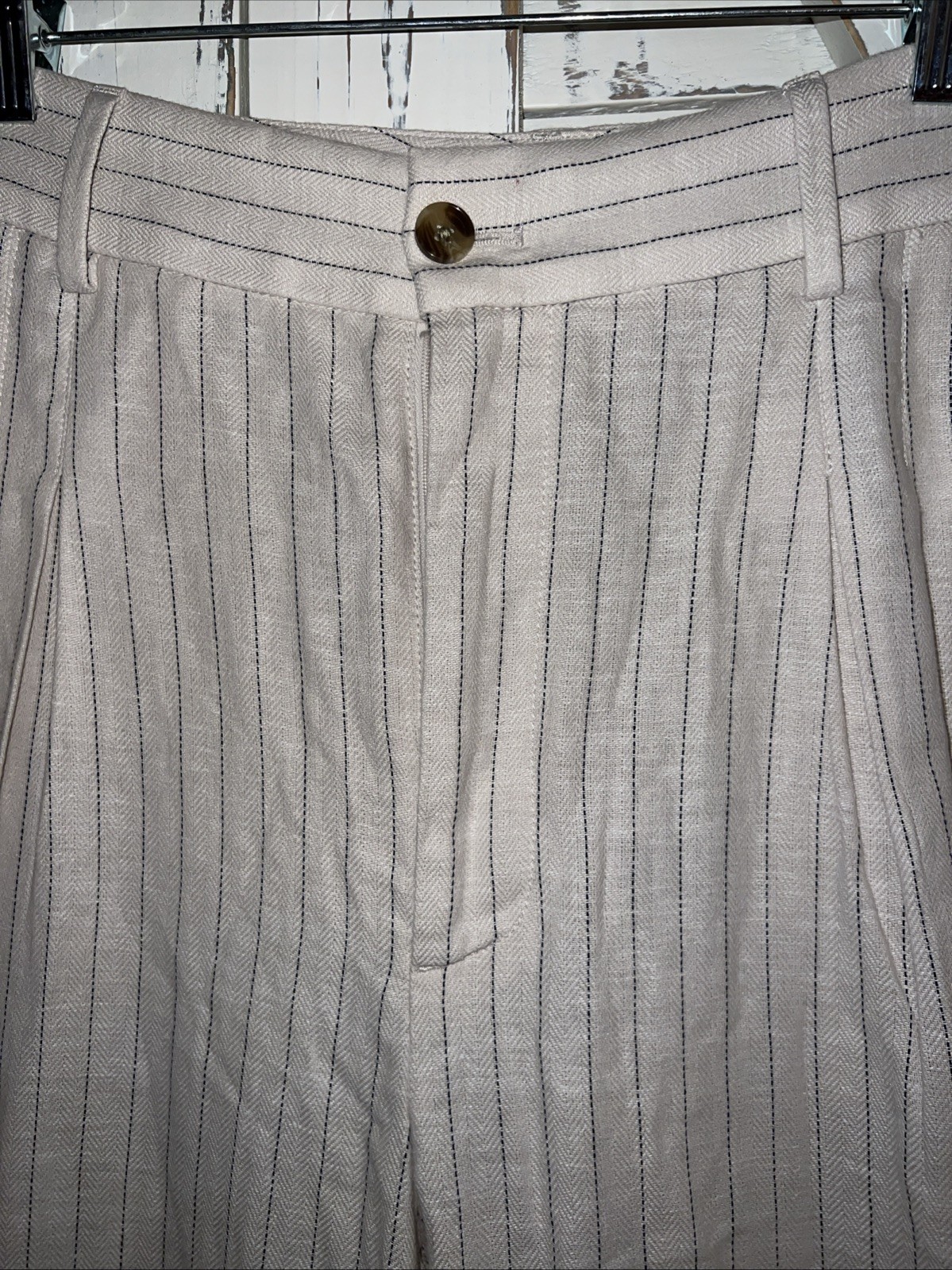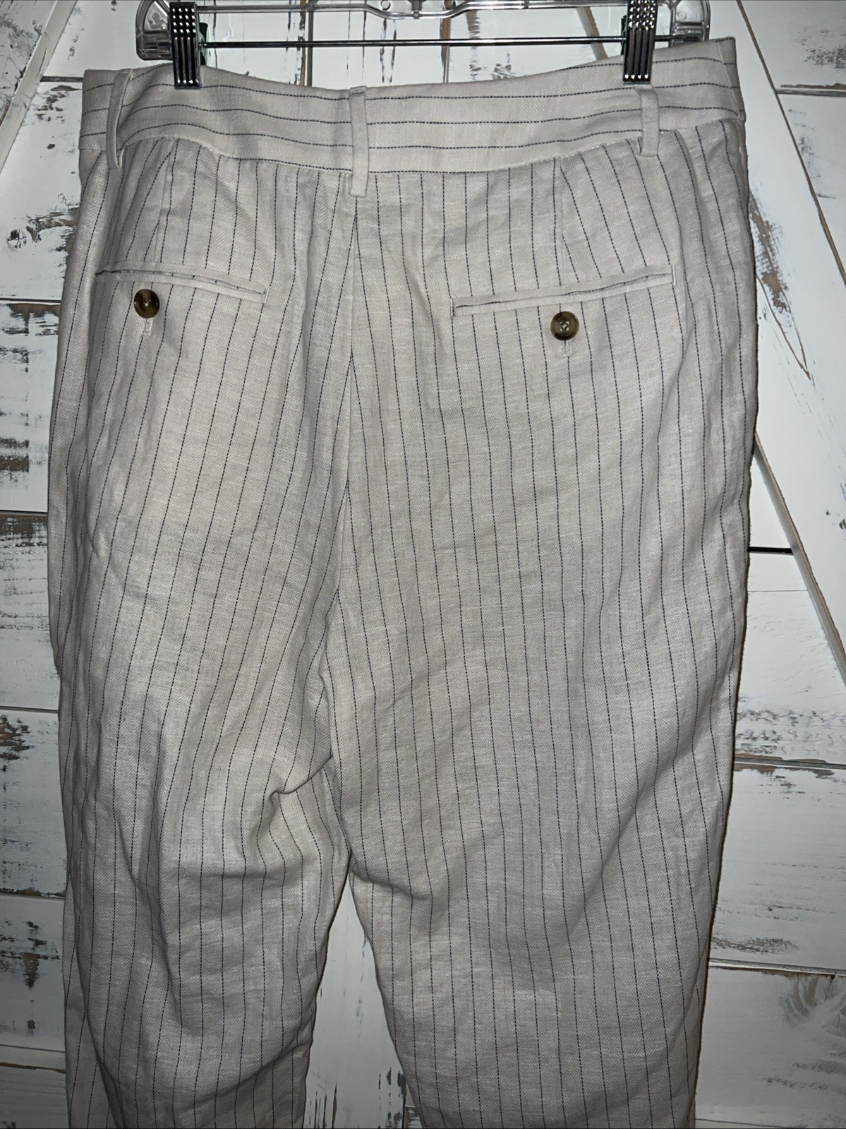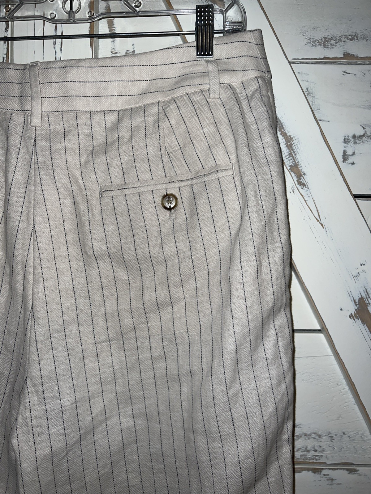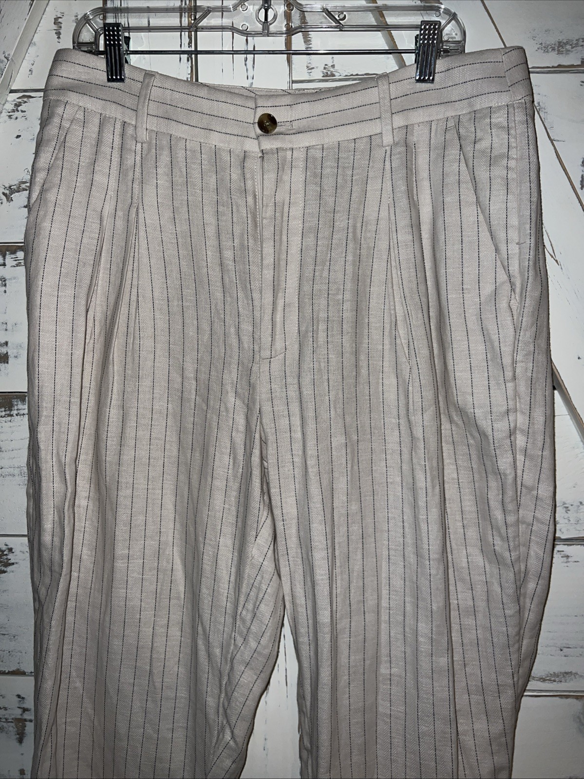 как выглядит Banana Republic Womens Linen Blend Pleated Trousers Ivory Strupe Size 12 фото