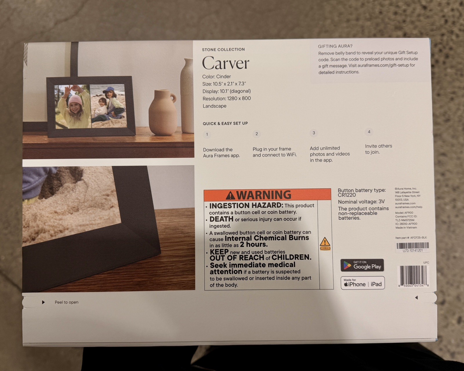 New LIFE Digital Frame Carver Stone Collection Aura - 10.1 HD Display Cinder