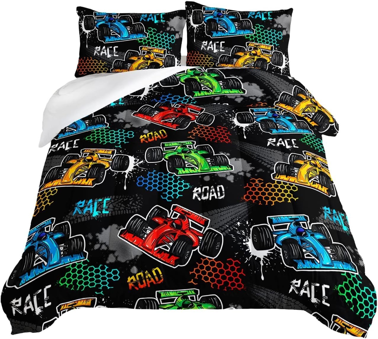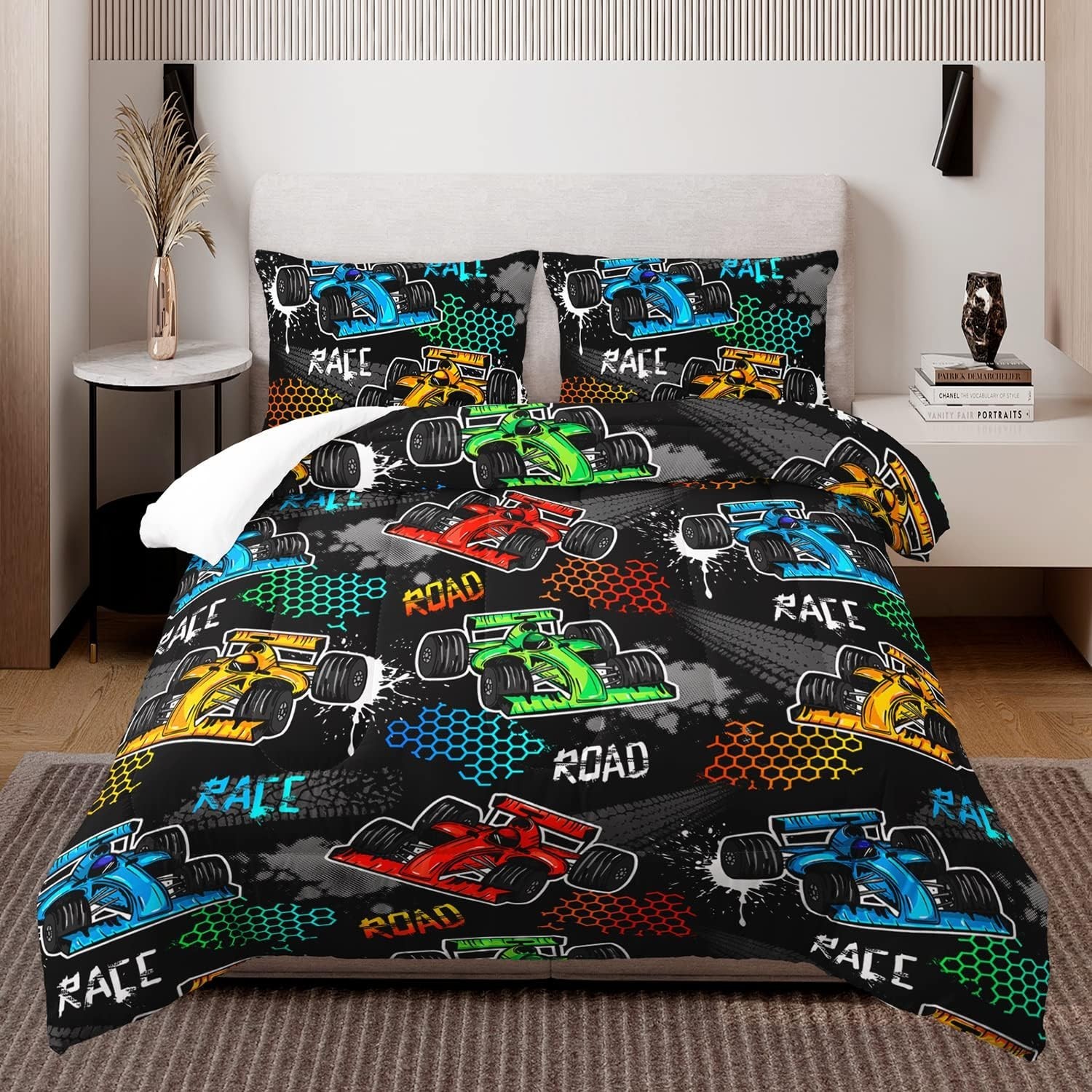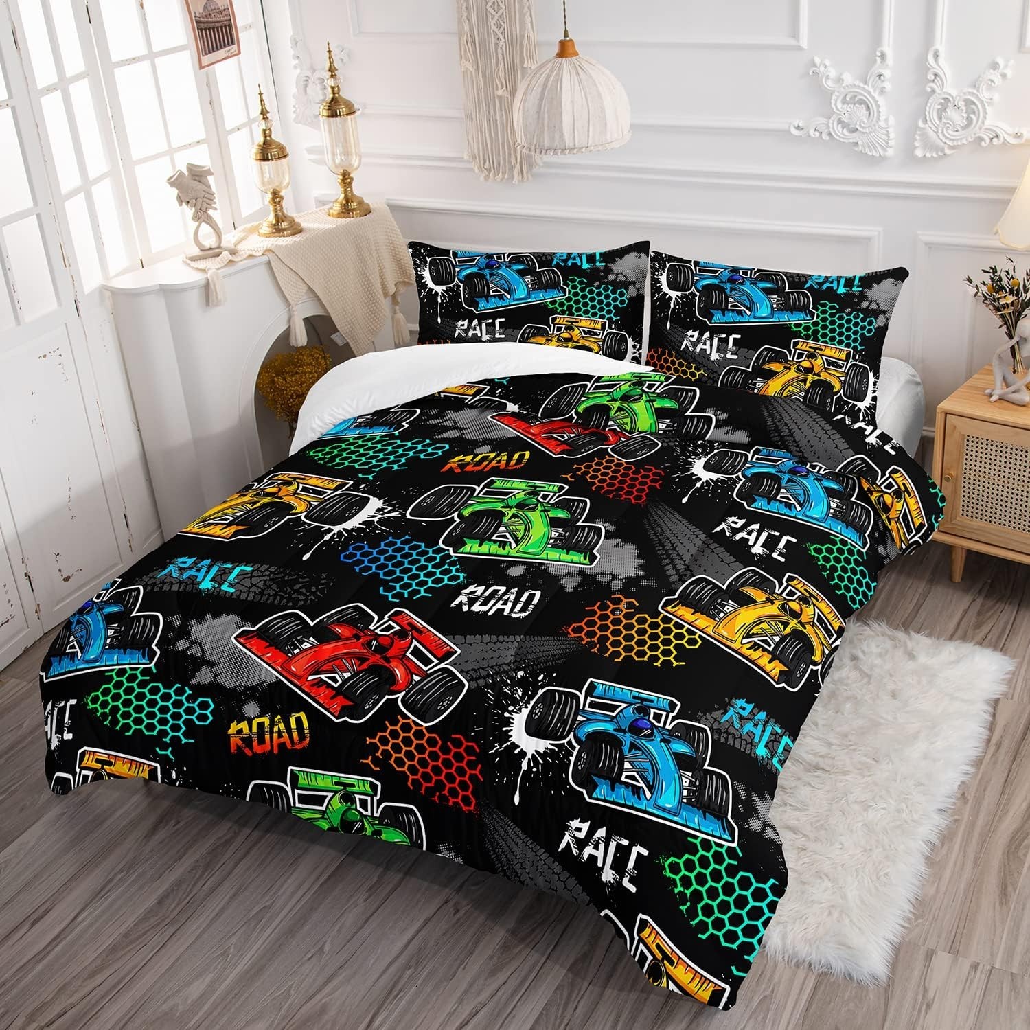 Colorful Cartoon Car Twin Comforter Pillowcase Set - Cozy Microfiber Bedding