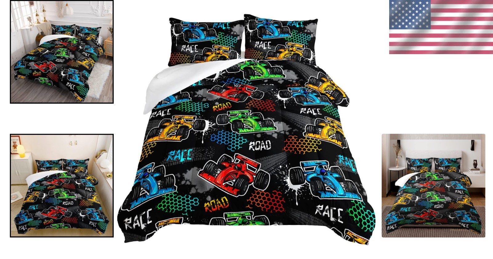 как выглядит Colorful Cartoon Car Twin Comforter Pillowcase Set - Cozy Microfiber Bedding фото
