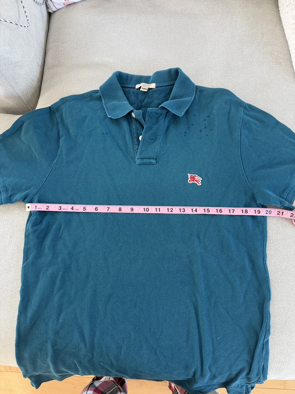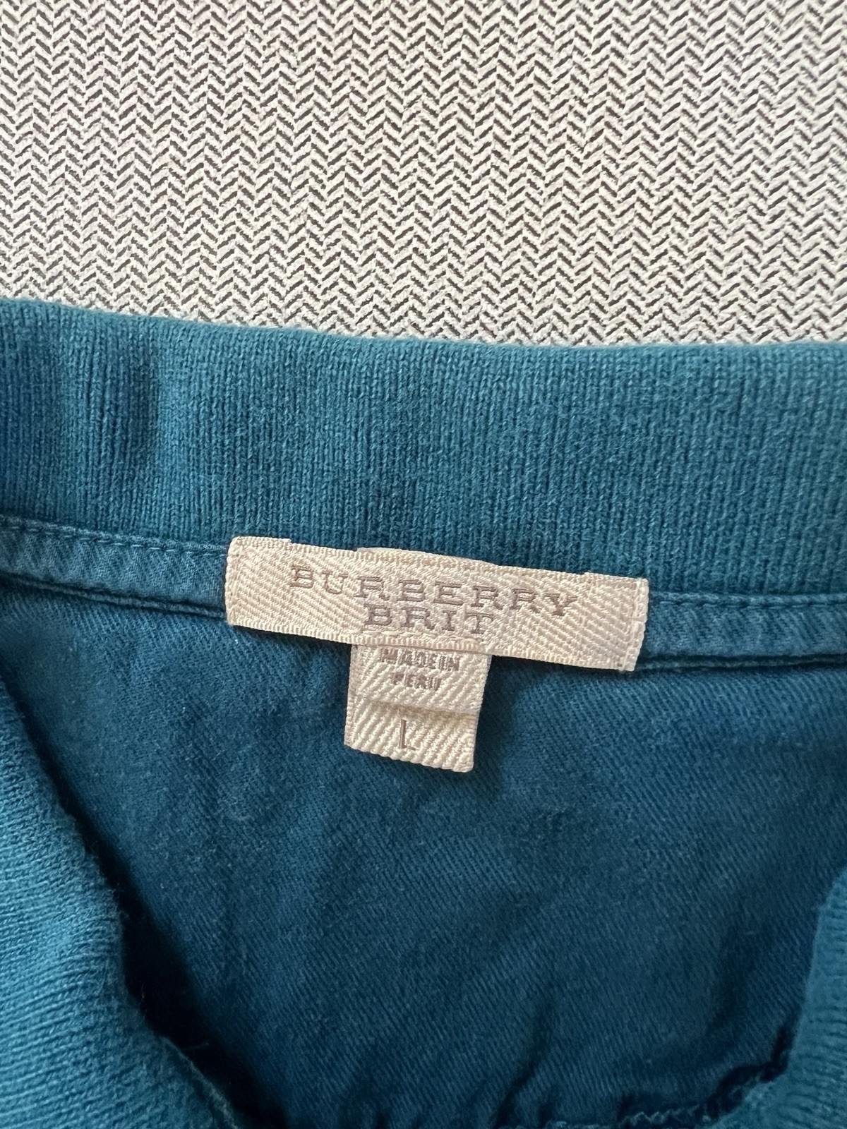 как выглядит Burberry Vintage Men s Polo Short Sleeve Size L Teal Color фото