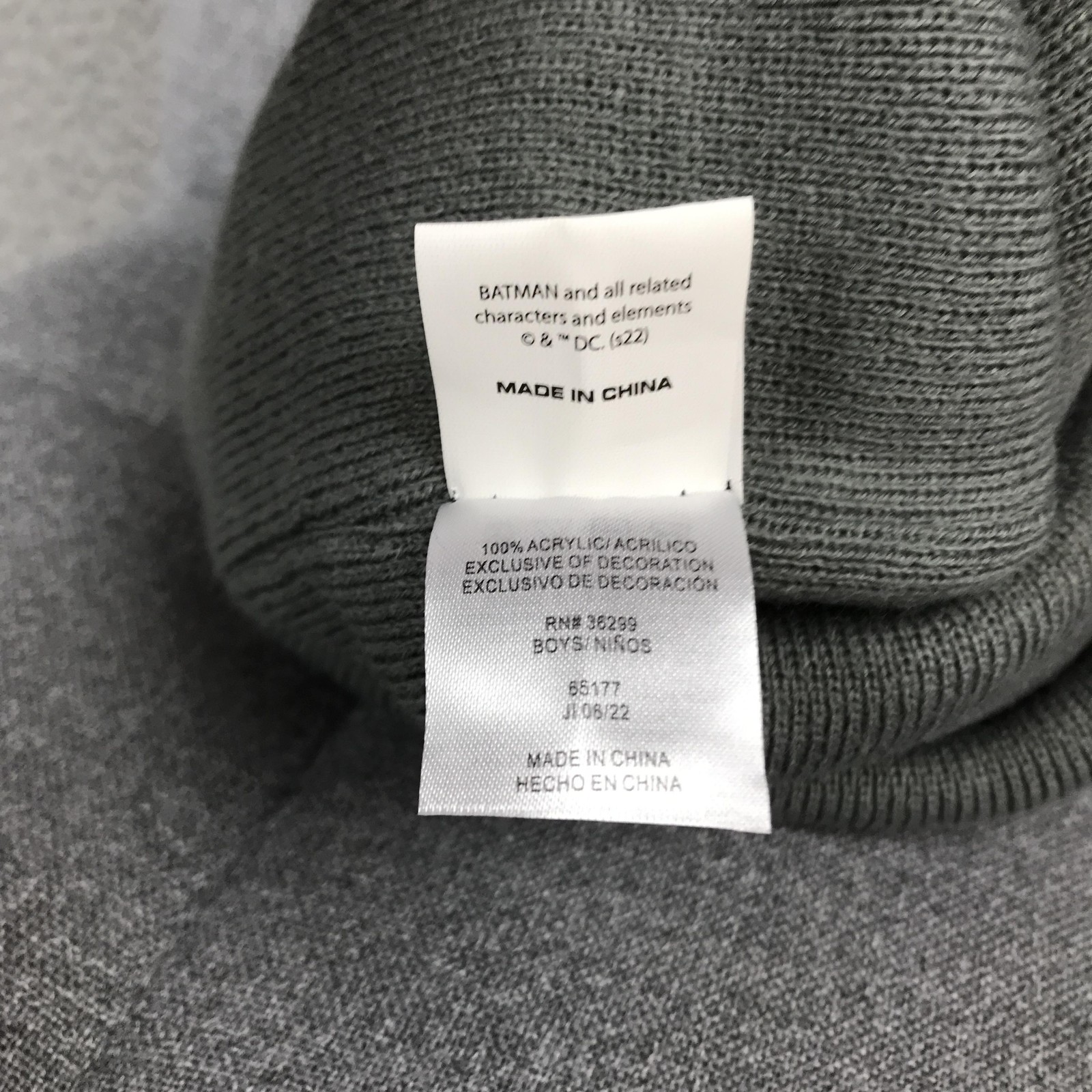как выглядит Batman Hat Beanie Knit Fitted Boys One Size Black Gray Striped Pom Pom Logo фото