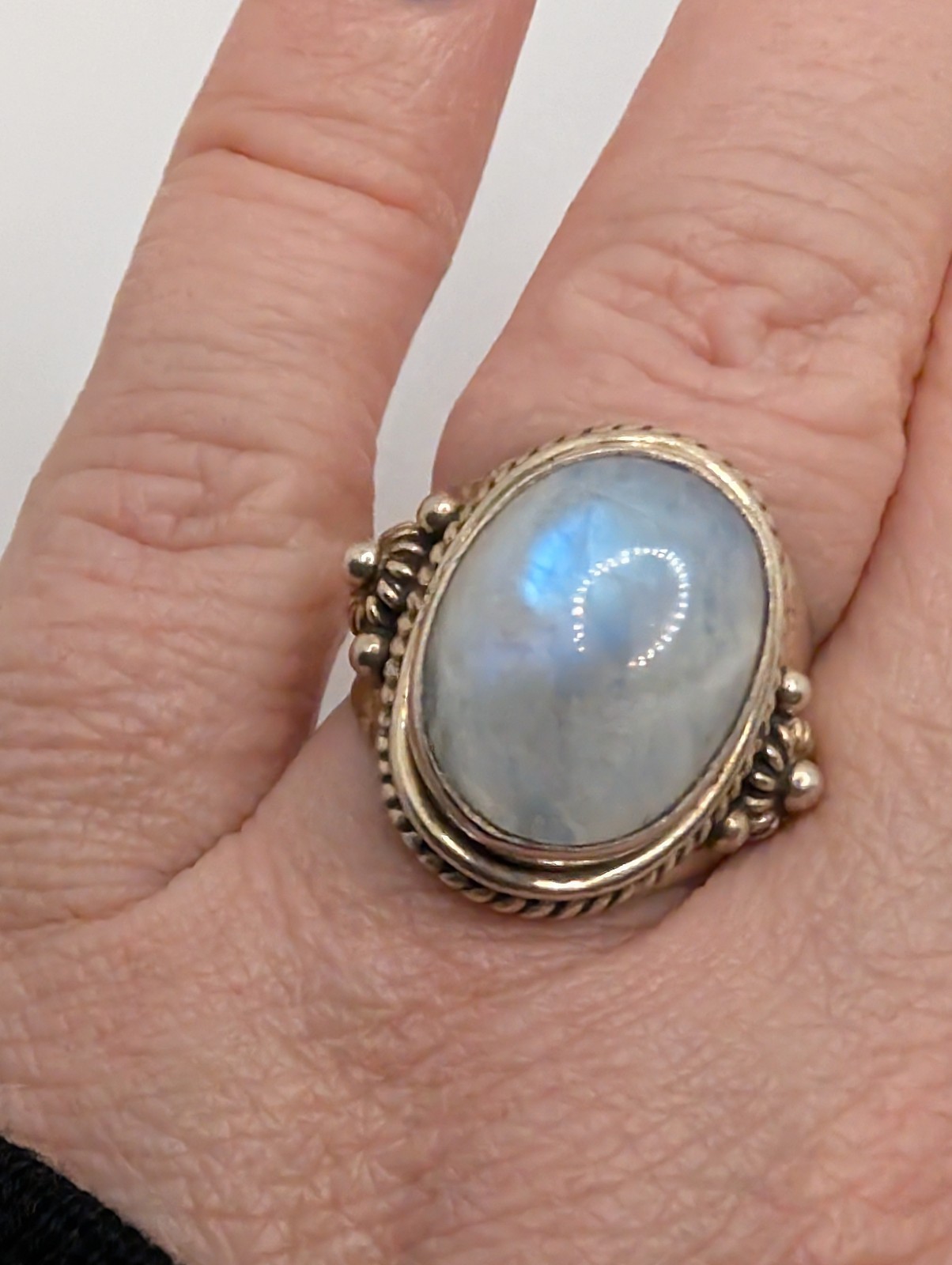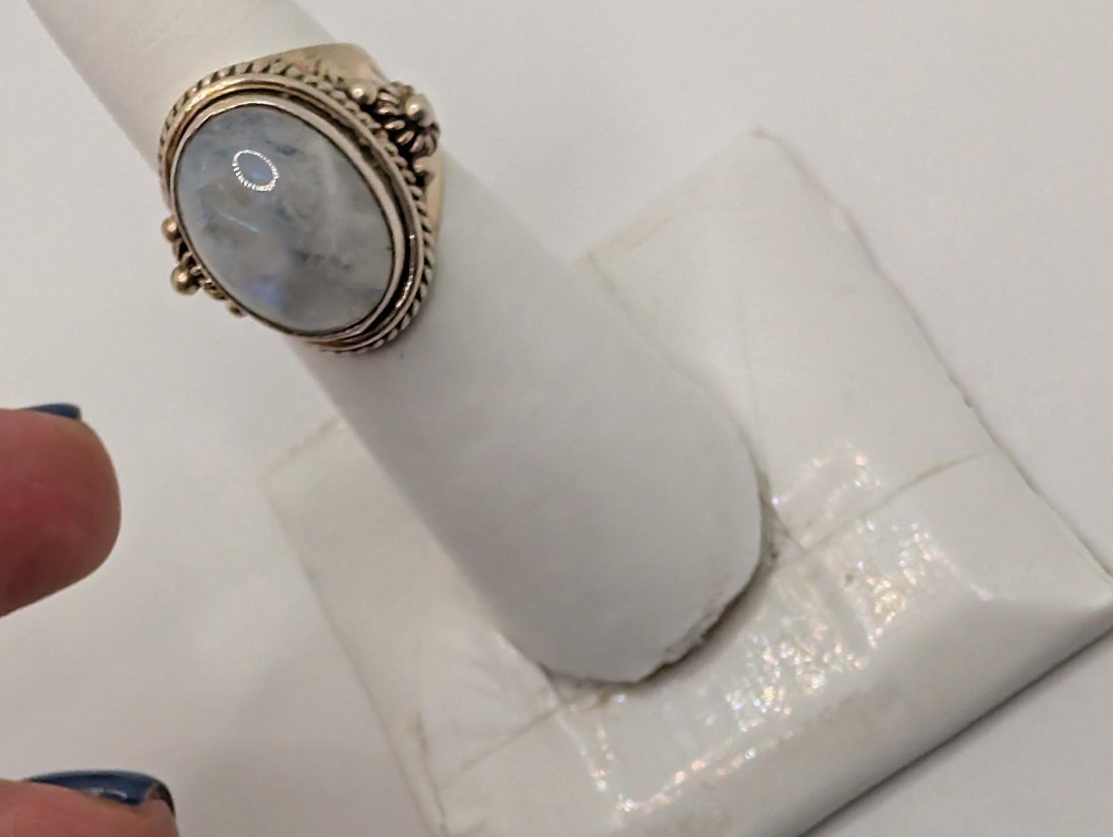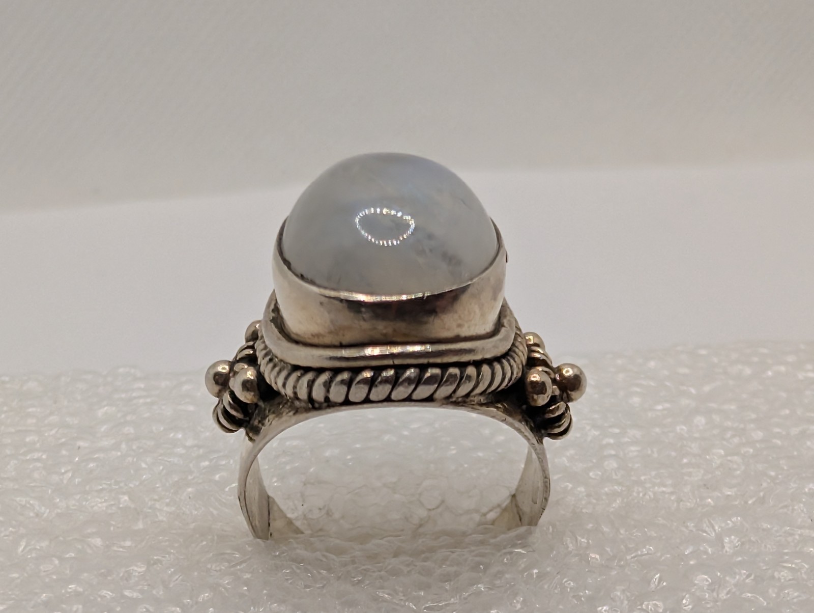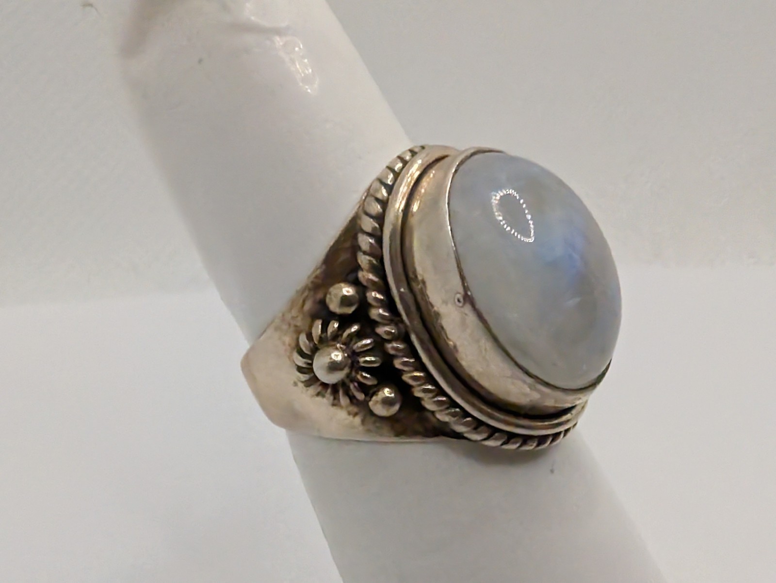как выглядит Vintage Sterling Silver 925 Rainbow Moonstone Statement Ring Size 6 фото
