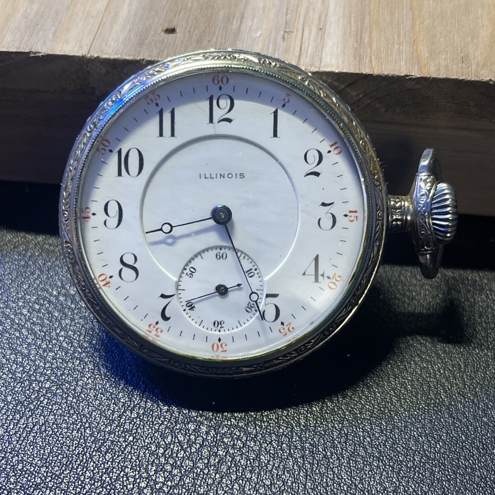 как выглядит Illinois Pocket Watch 1912 Model 6 Grade 605 Size 16s 17j Hunting фото
