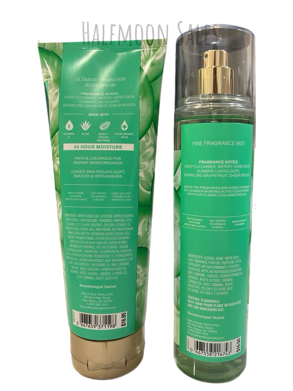 Bath Body Works Cucumber Melon Body Cream Fine Fragrance Mist Set