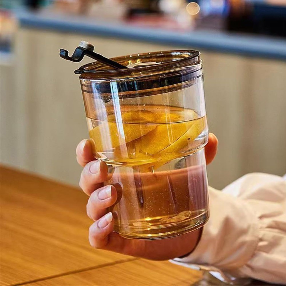 Thick Wall Reusable Glass Tumbler with Straw and Lid 13oz Iced Coffee Cup for