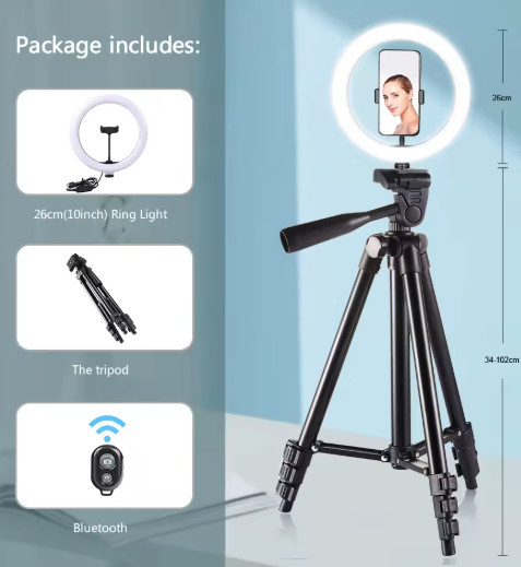 как выглядит Remote Control 26cm Led Selfie Ring Extendable Tripod Stand, LED Circle Lights фото