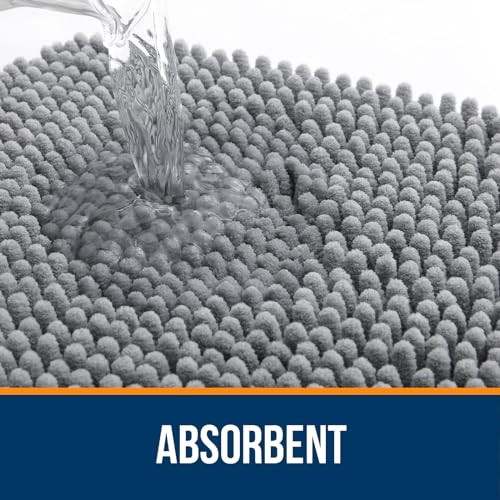 Bathroom Rugs 30x20, Extra Soft Absorbent Chenille Bath Rugs, 30 x 20 Grey