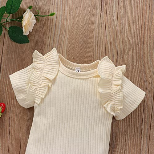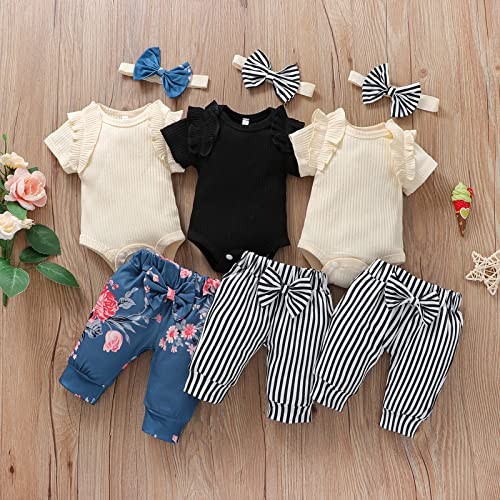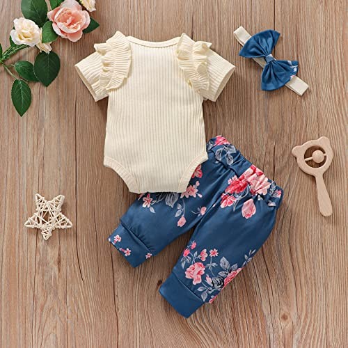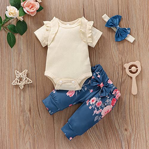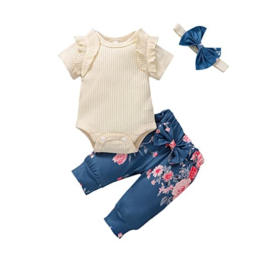 Newborn Baby Girls Outfits set long Sleeve Cotton Pants Preemie Beige-blue