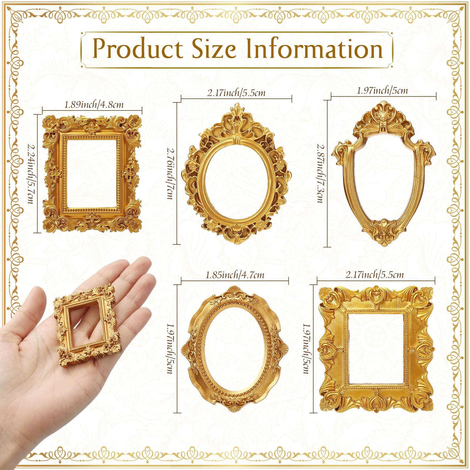60 Pcs Mini Gold Picture Frames Vintage Resin Tiny Photo Frame Antique Miniat...