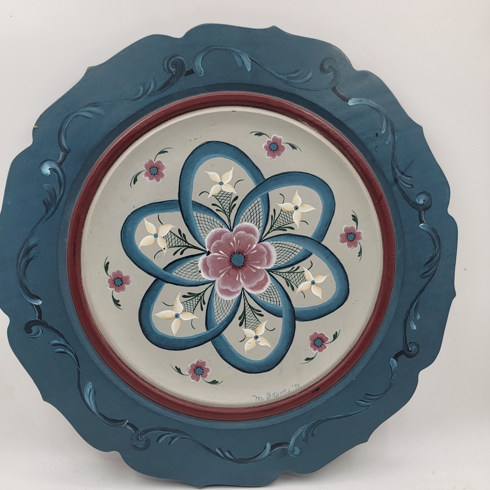 Rosemaling Wooden Norwegian Decorative Plate Handpainted 15" Signed Cottage Folk