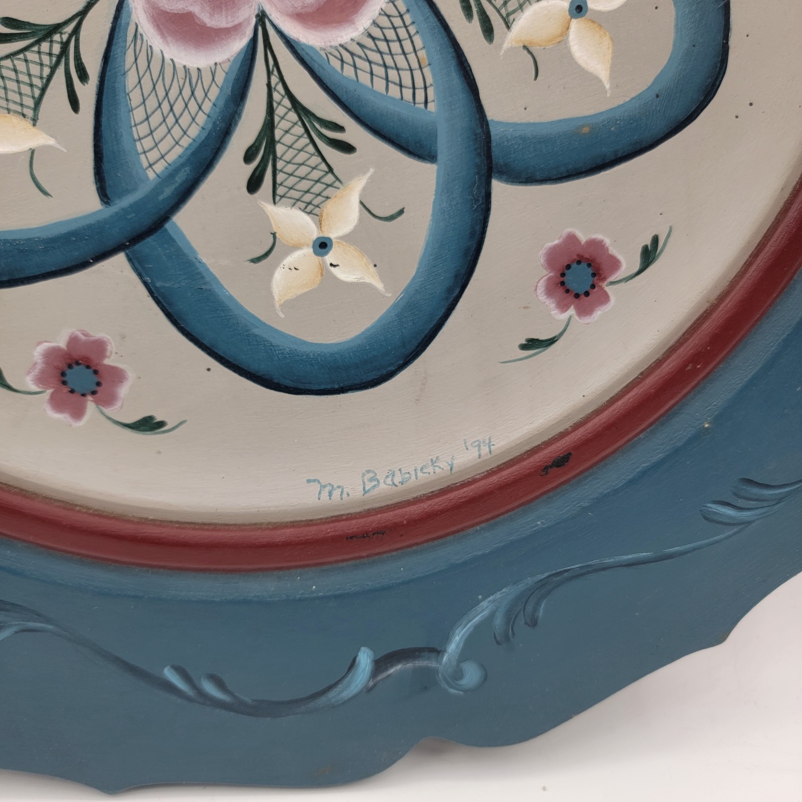 как выглядит Rosemaling Wooden Norwegian Decorative Plate Handpainted 15" Signed Cottage Folk фото