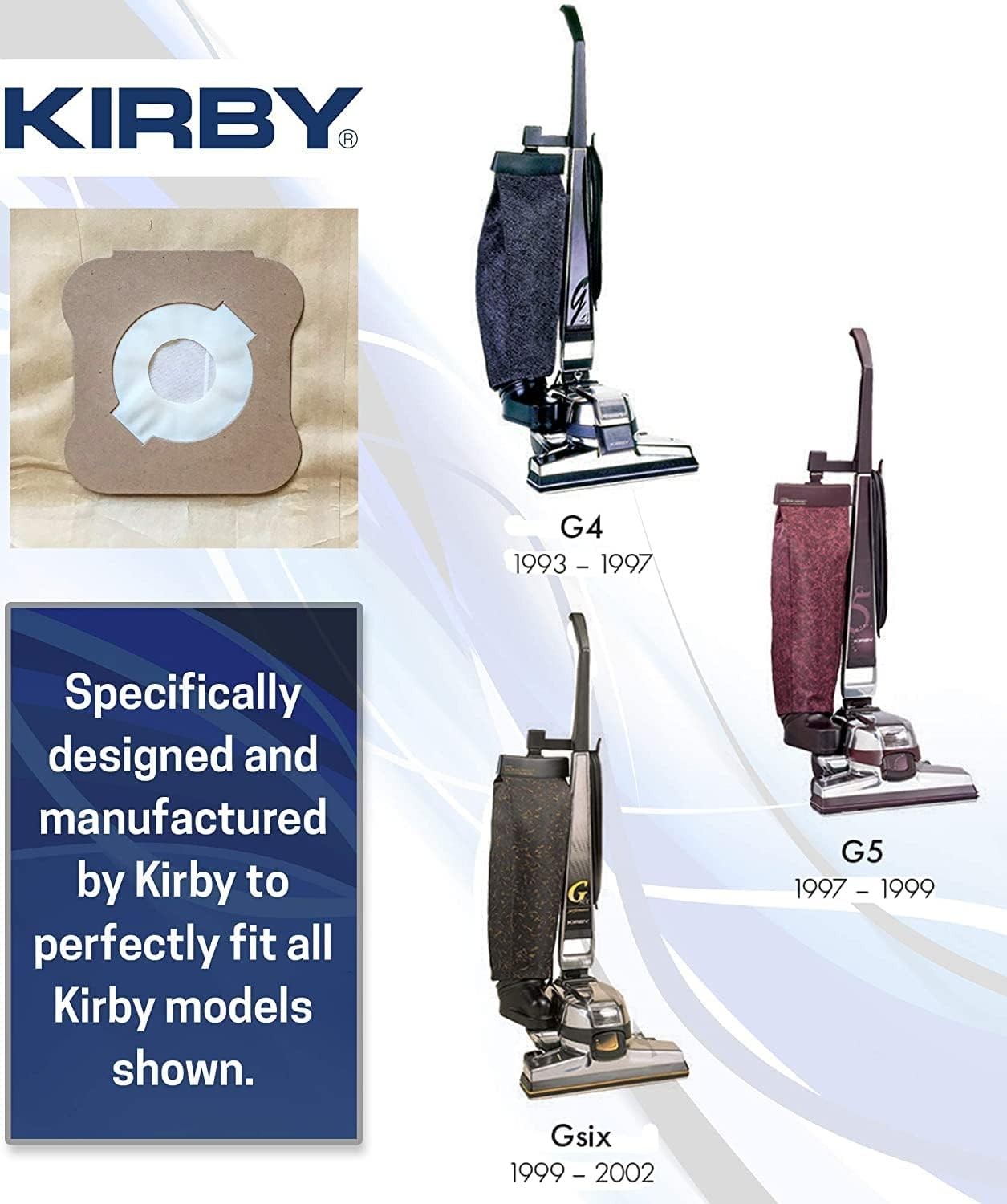 Особенности: Disposable, High-capacity dust collection, Durable & tear-resistant material, Convenient 9-pack value, Perfect fit for Kirby G4 G5 G6