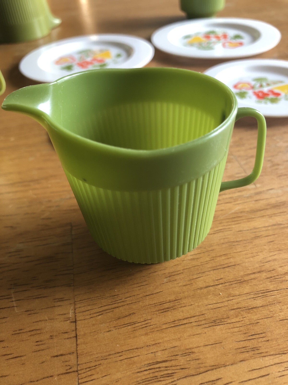 как выглядит Vintage Dishes Play Set Eagle Toys HG Avocado Green Cups Pitcher Sugar Plates фото