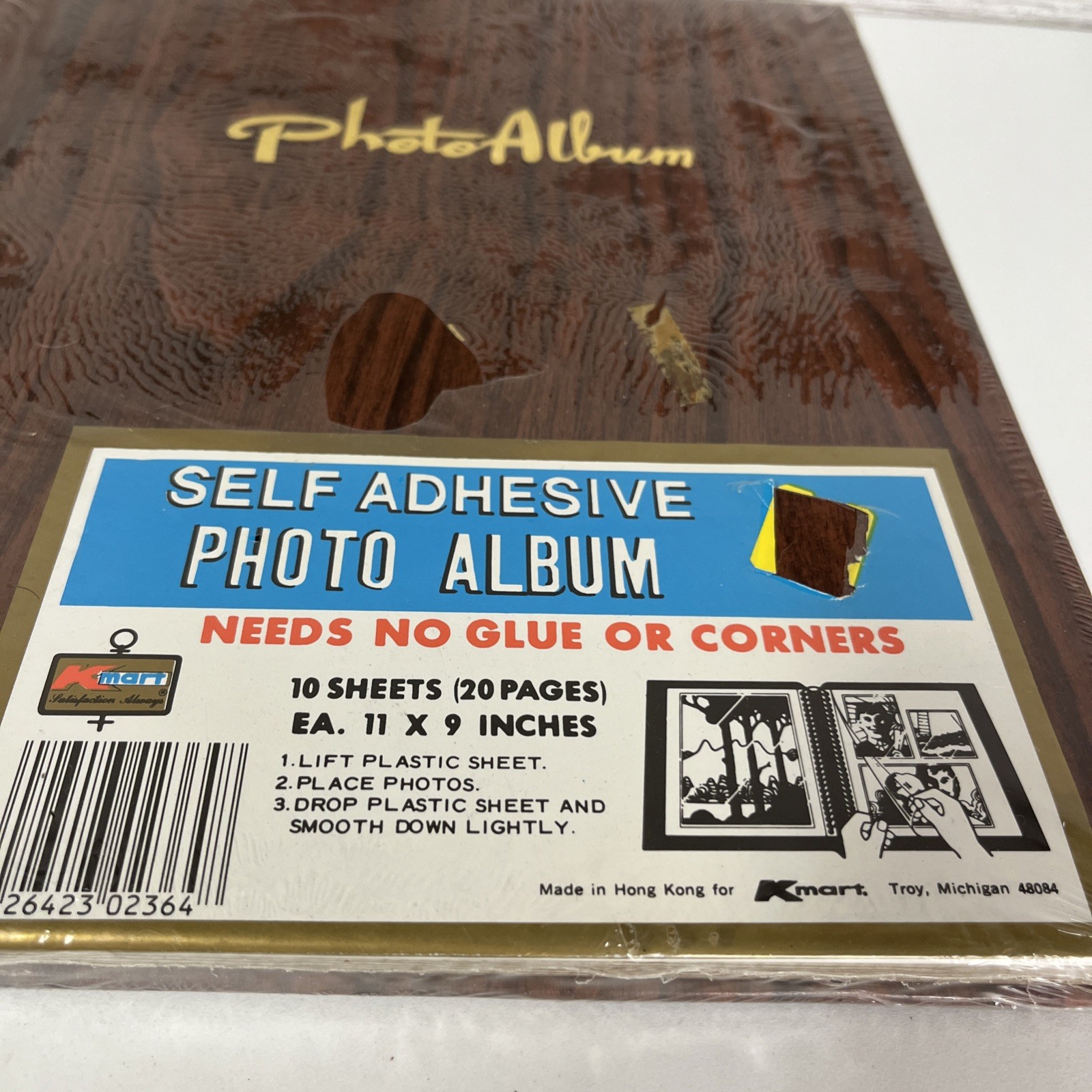 • Vintage Sealed 11 x9 Self Adhesive Photo Album 10 Sheets 20 Pgs Wood Pattern