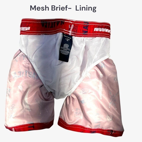 Nautica Swim Shorts Drawstring Pocket Coastal Nautical Print Red Blue Boy SZ 6