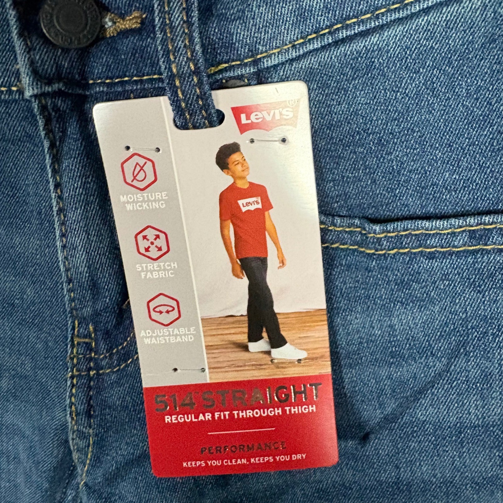 как выглядит Levi Strauss Boys 514 Straight Performance Jeans Size 8 Regular Blue Stretch фото
