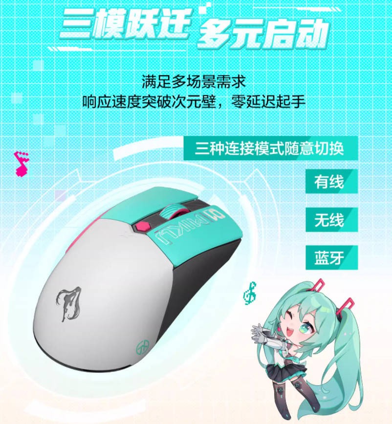 ASUS TX Gaming Mini Wireless/ Bluetooth/2.4GHZ Mouse Hatsune Miku 12000 DPI 65g
