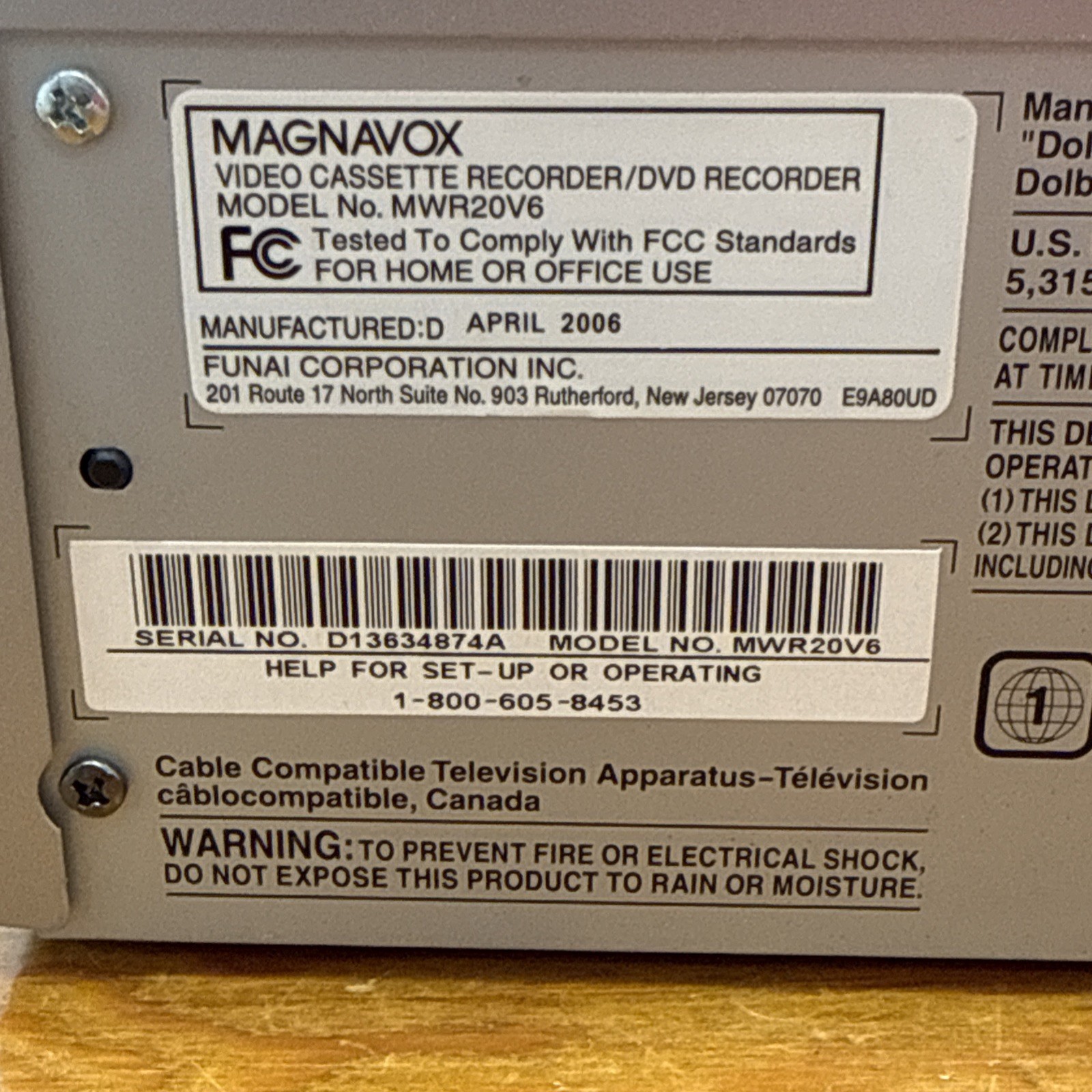 как выглядит Magnavox MWR20V6 VCR DVD Combo Recorder PARTS/REPAIR ONLY DVD Works/VCR Errors фото