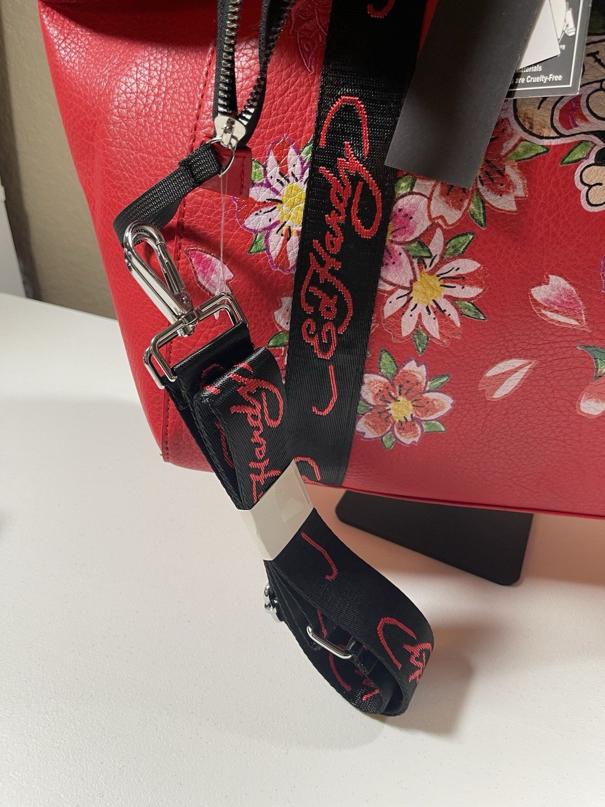 как выглядит Ed Hardy Weekender Bag Luggage Skull Heart Flowers Large Red Purse NWT фото