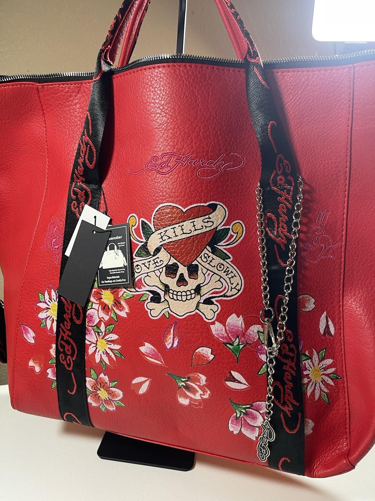 Ed Hardy Weekender Bag Luggage Skull Heart Flowers Large Red Purse NWT