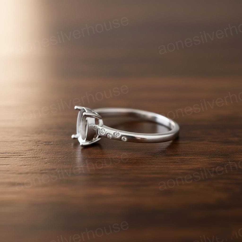 как выглядит 925 Sterling Silver 5X7MM Oval Solitaire Ring-Semi Mount Accent with Side Stones фото