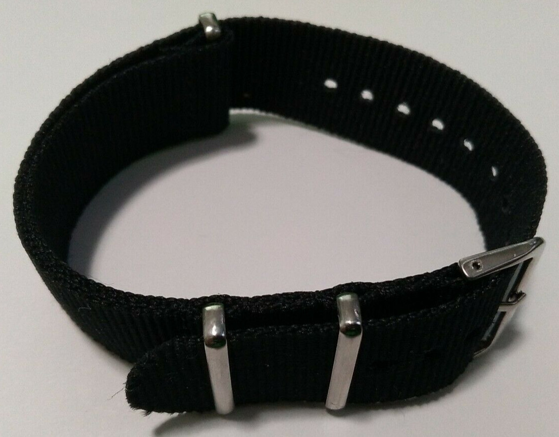 New Fits any 22mm Black Nylon Simple Easy Pass Thru Watch Band One Piece Light