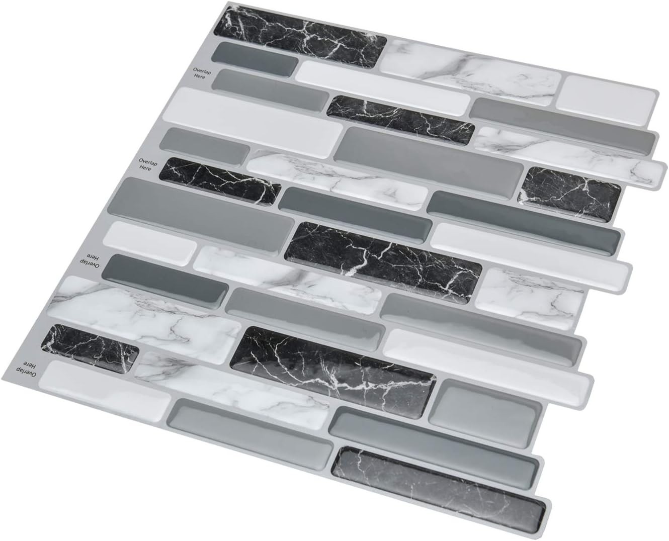 Self-Adhesive 12x12 Marble Grey Wall Tiles - Lightweight Stain Resistant