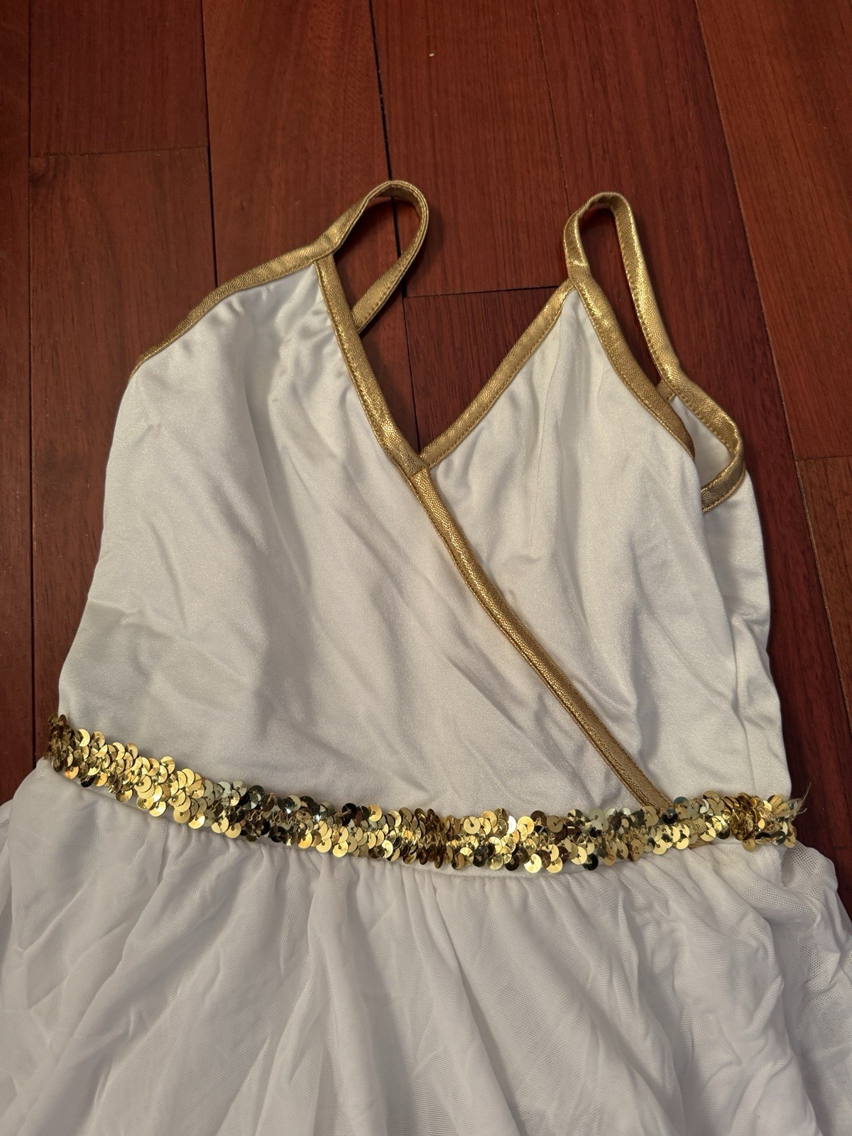 как выглядит Double Platinum White Gold Lyrical Dance Costume Hi-Low Skirt  Child Large фото