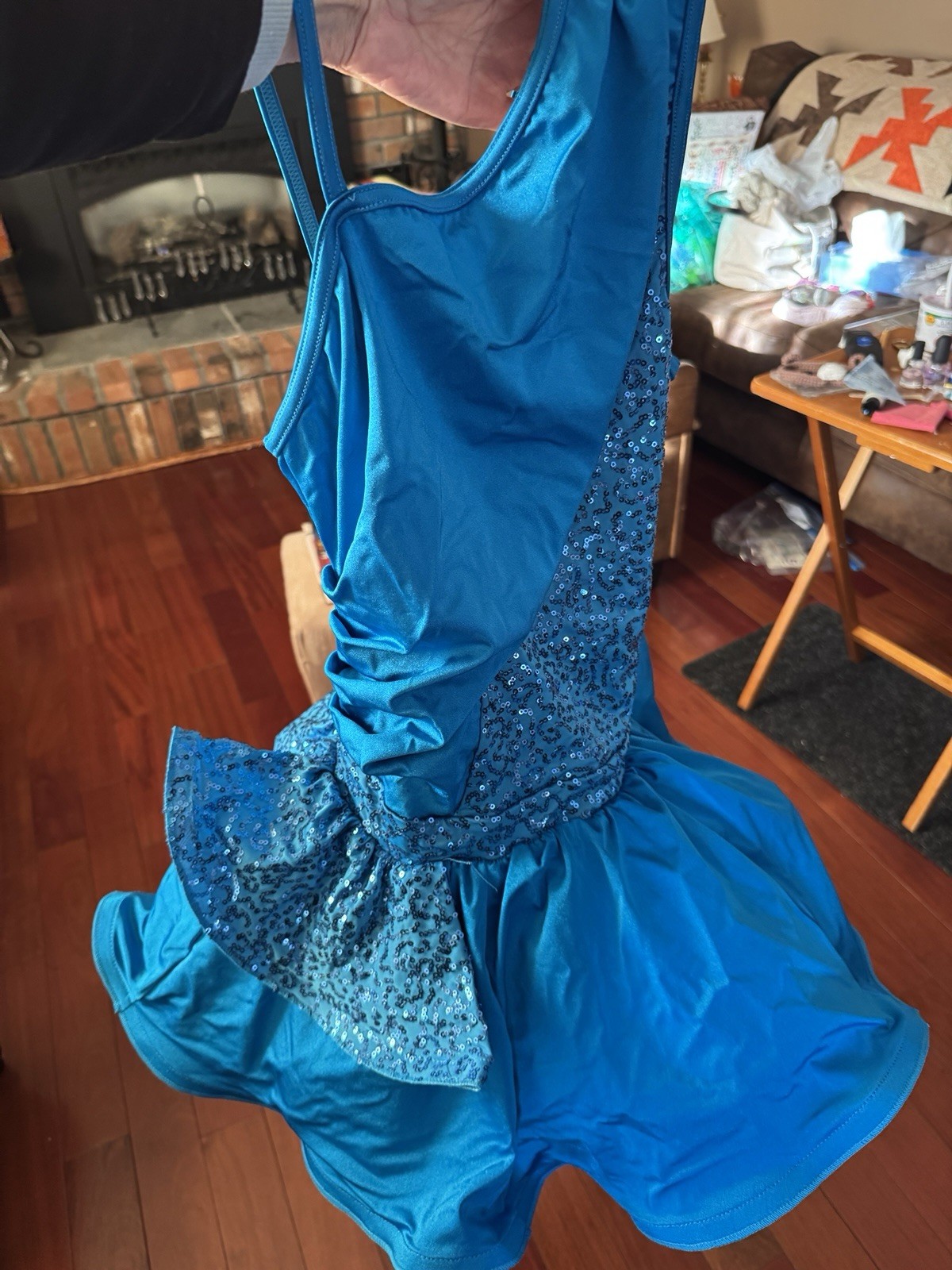 как выглядит Weissman Blue Sequin Dance Costume Adult Small SA Lyrical Jazz Tulle Skirt фото